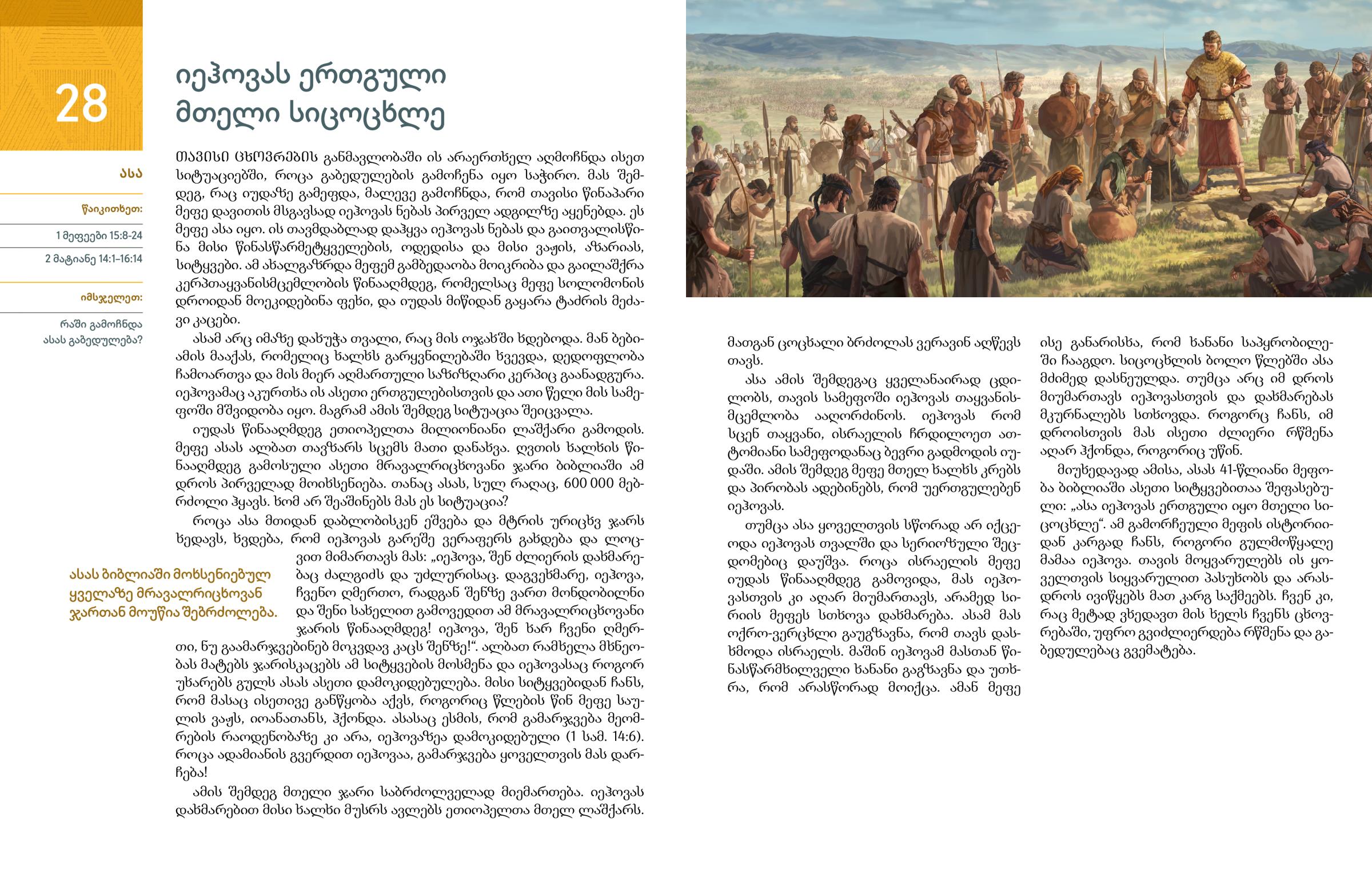 • წინასწარმეტყველი აზარიას სიტყვებმა ასა წმინდა თაყვანისმცემლობის აღდგენისკენ აღძრა. ჩვენ როგორ შეგვიძლია წავახალისოთ და-ძმები? სურათი 2