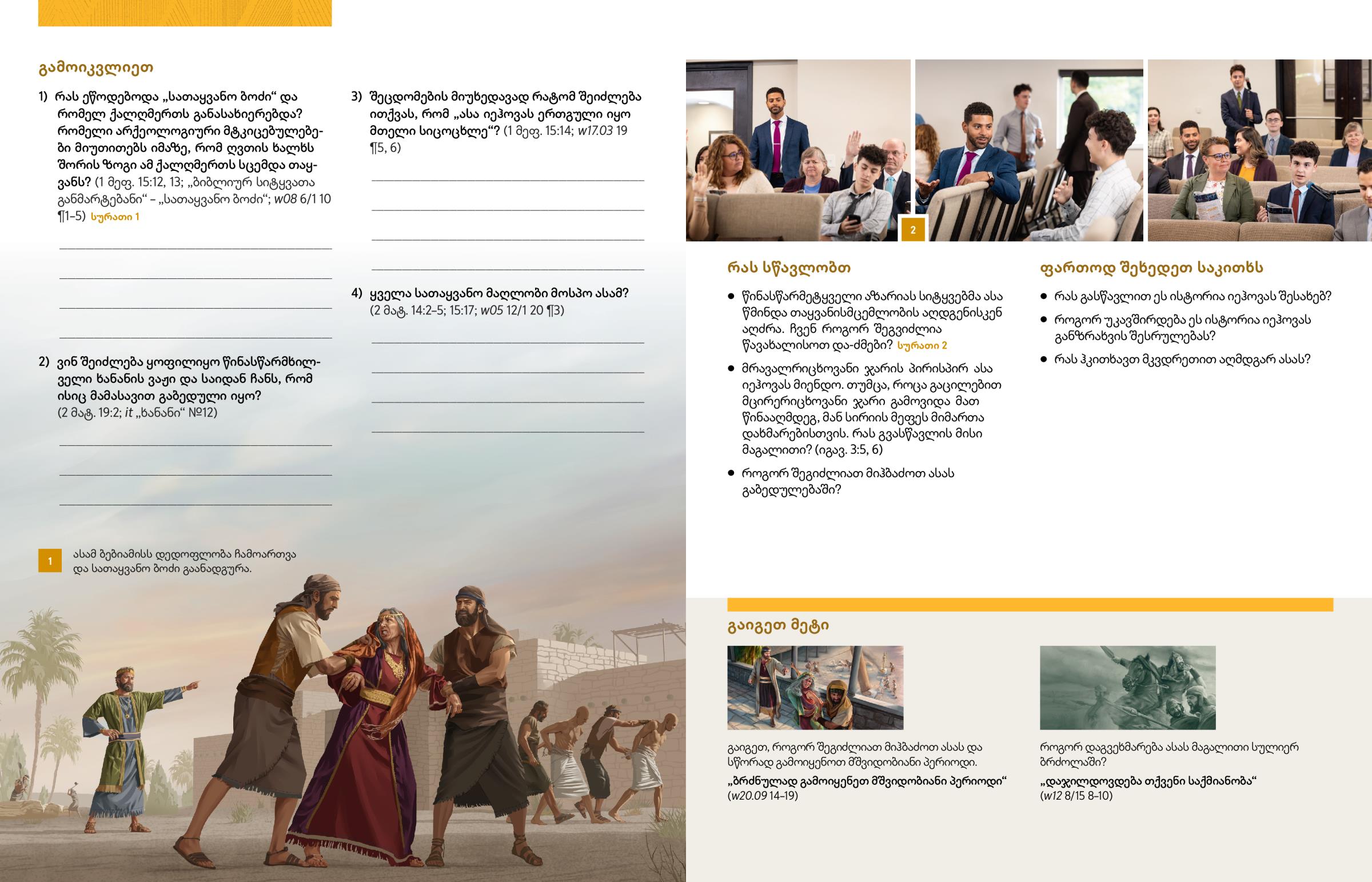 2. 3) შეცდომების მიუხედავად რატომ შეიძლება ითქვას, რომ „ასა იეჰოვას ერთგული იყო მთელი სიცოცხლე“? (1 მეფ. 15:14; w17.03 19 ¶5, 6)