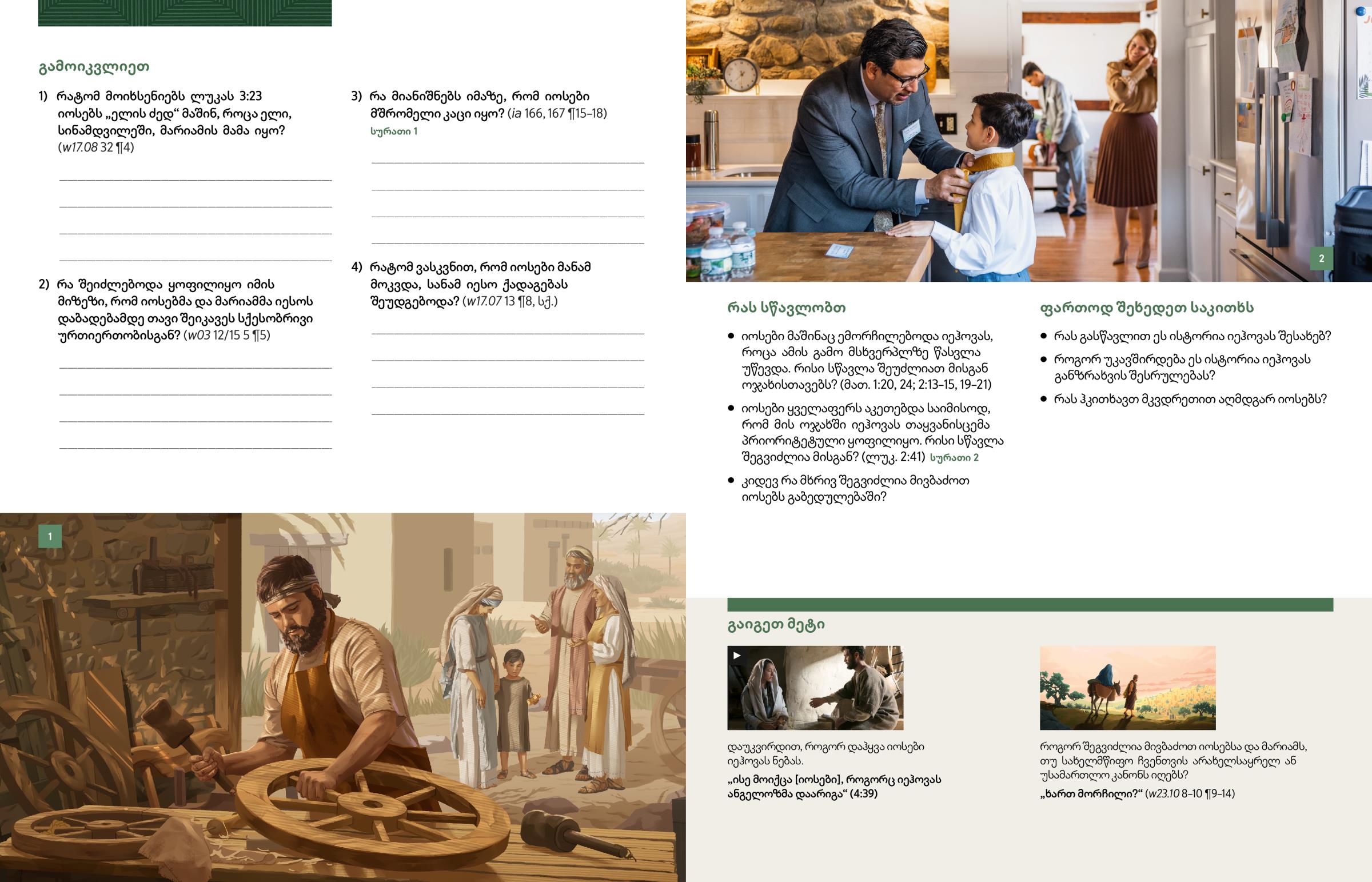 იოსები ყველაფერს აკეთებდა საიმისოდ, რომ მის ოჯახში იეჰოვას თაყვანისცემა პრიორიტეტული ყოფილიყო. რისი სწავლა შეგვიძლია მისგან? (ლუკ. 2:41) სურათი 2