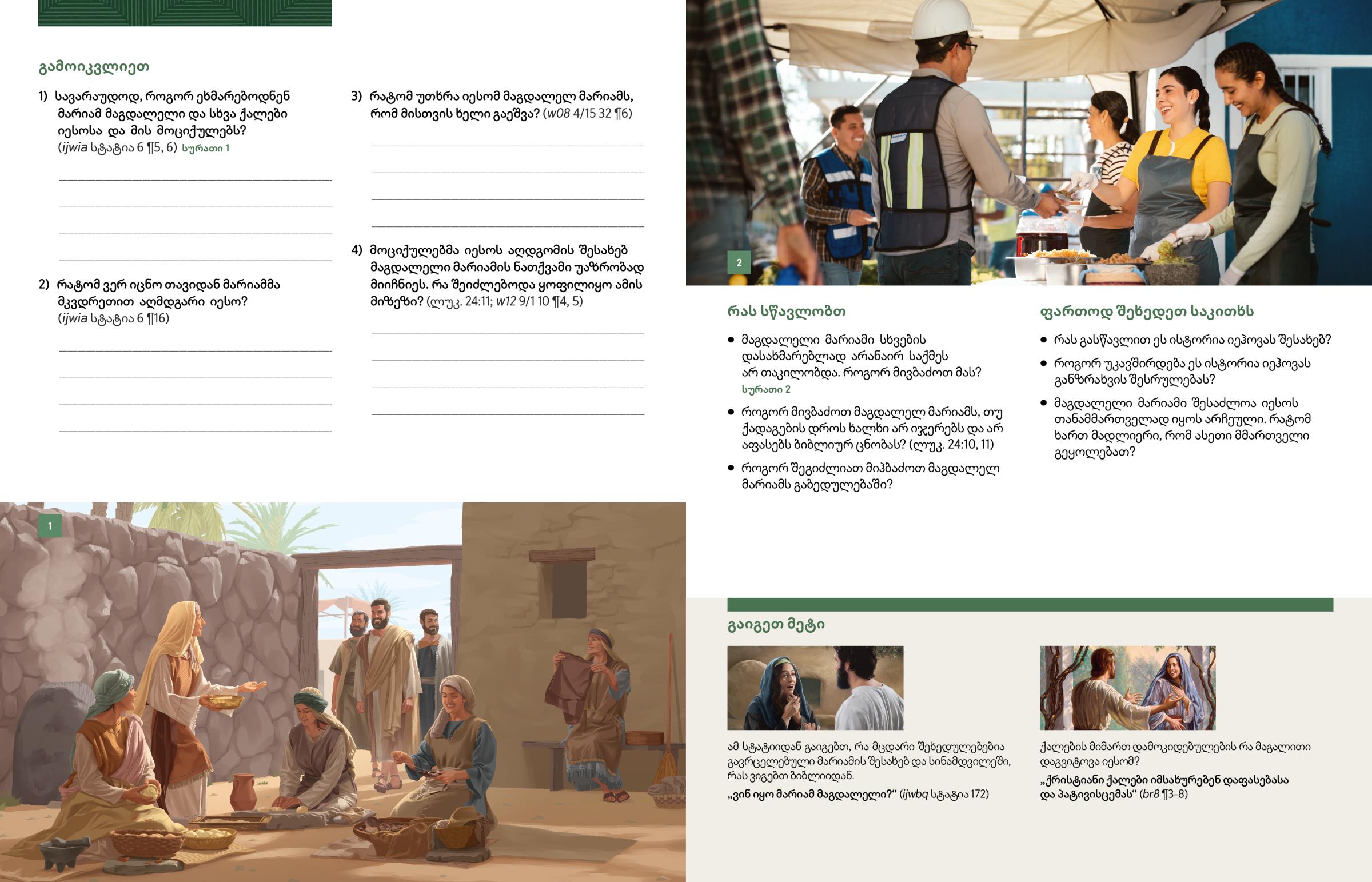 1) სავარაუდოდ, როგორ ეხმარებოდნენ მარიამ მაგდალელი და სხვა ქალები იესოსა და მის მოციქულებს? (ijwia სტატია 6 ¶5, 6) სურათი 1