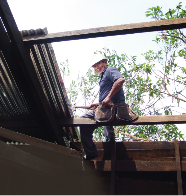 სტიქიით დაზარალებულთა დახმარების კომიტეტის წევრი დაზარალებულებს ციკლონ „ნარგისის“ შემდეგ სახლის შეკეთებაში ეხმარება (გვერდი 163)