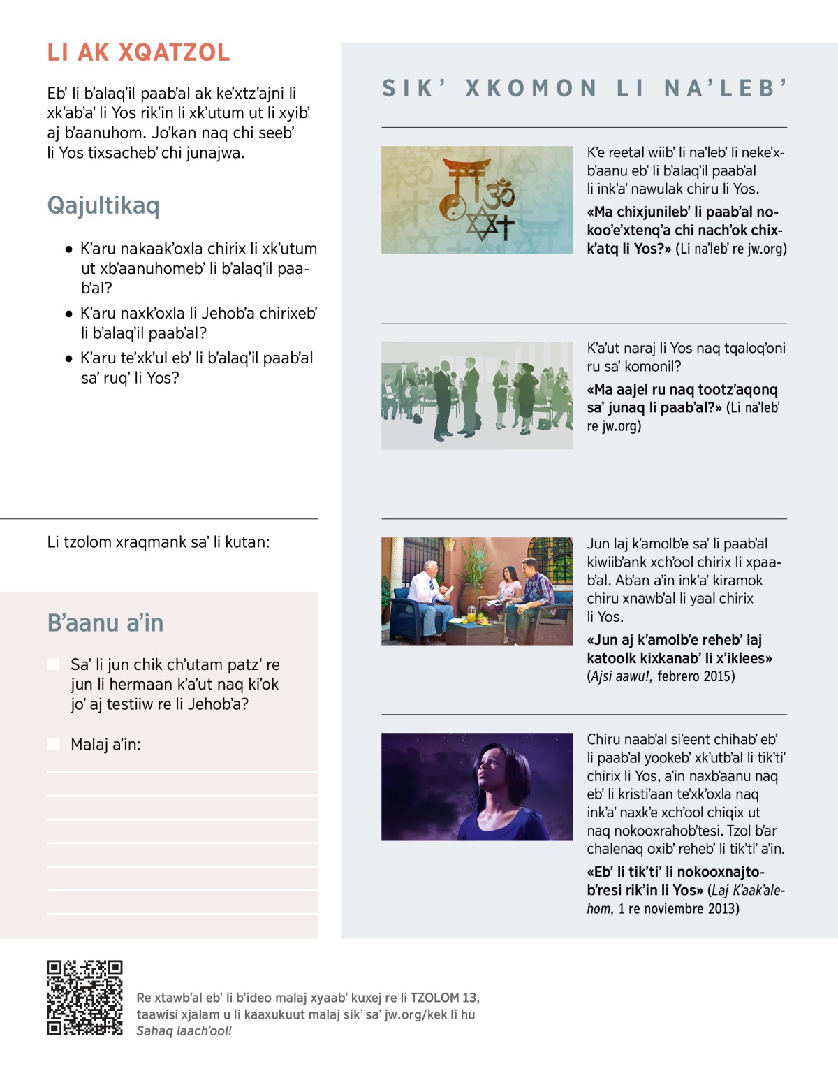 • Ebʼ li bʼalaqʼil paabʼal nekeʼxtzʼajni li xkʼabʼaʼ li Yos