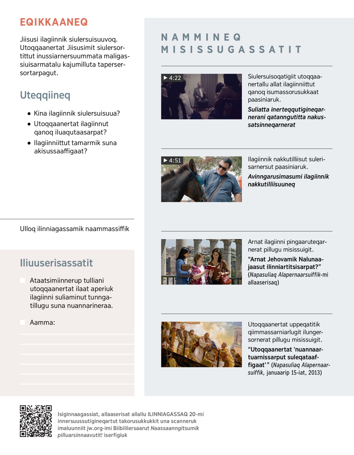 Biibilimi allassimavoq utoqqaanertat ilagiinniittut qanoq pissuseqarfigissagaat.