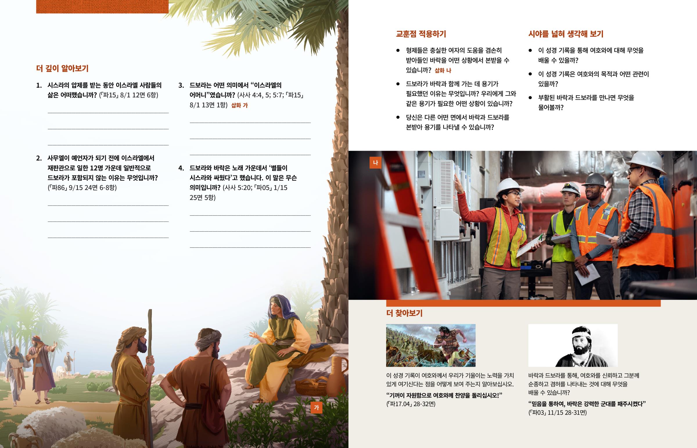 1. 1. 시스라의 압제를 받는 동안 이스라엘 사람들의 삶은 어떠했습니까? (「파15」 8/1 12면 6항)