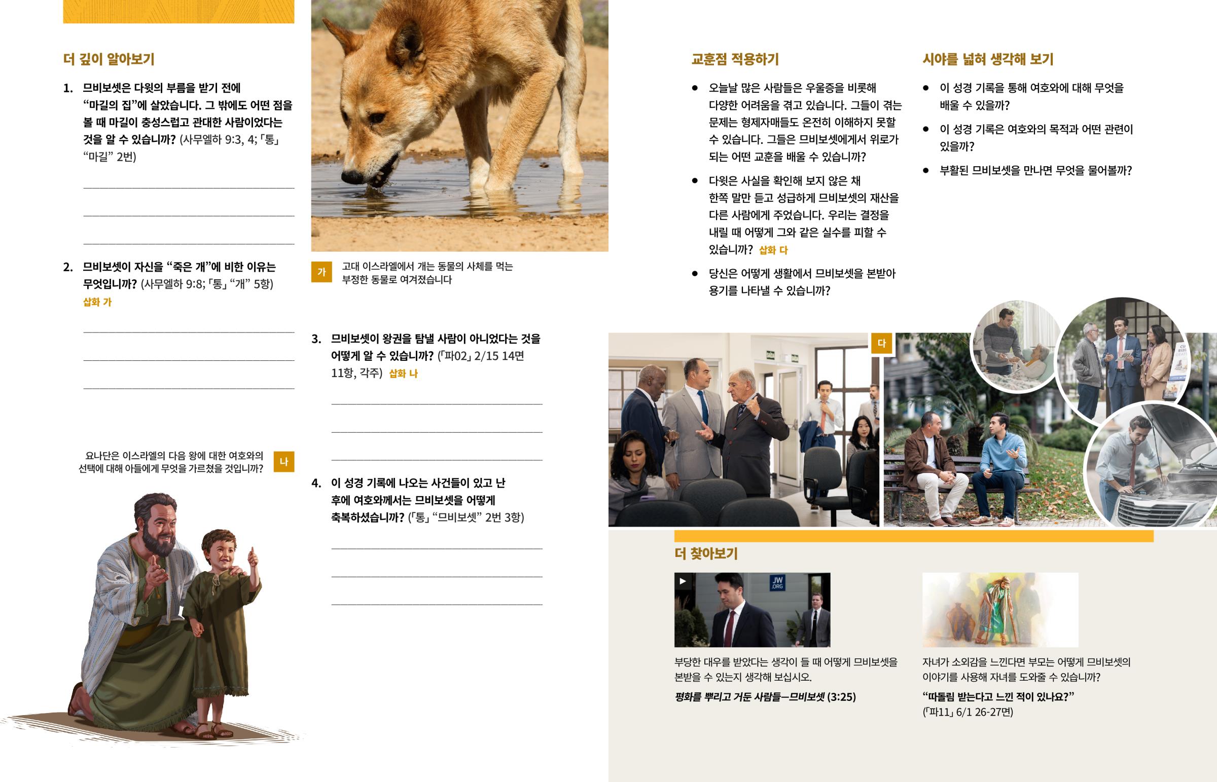 2. 므비보셋이 자신을 “죽은 개”에 비한 이유는 무엇입니까? (사무엘하 9:8; 「통」 “개” 5항) 삽화 가