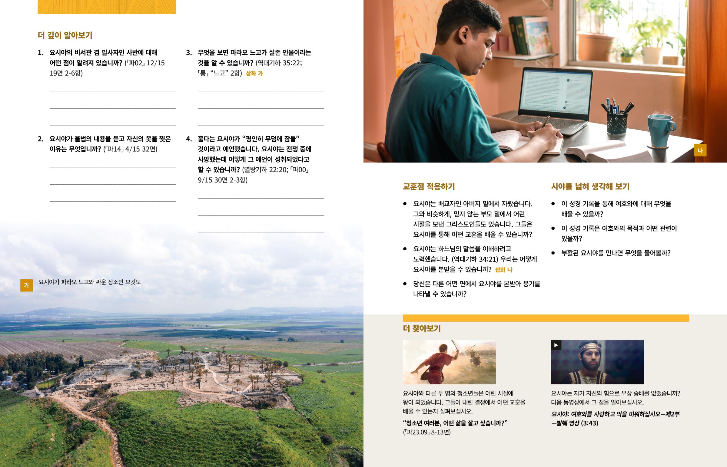 요시야는 하느님의 말씀을 이해하려고 노력했습니다. (역대기하 34:21) 우리는 어떻게 요시야를 본받을 수 있습니까? 삽화 나