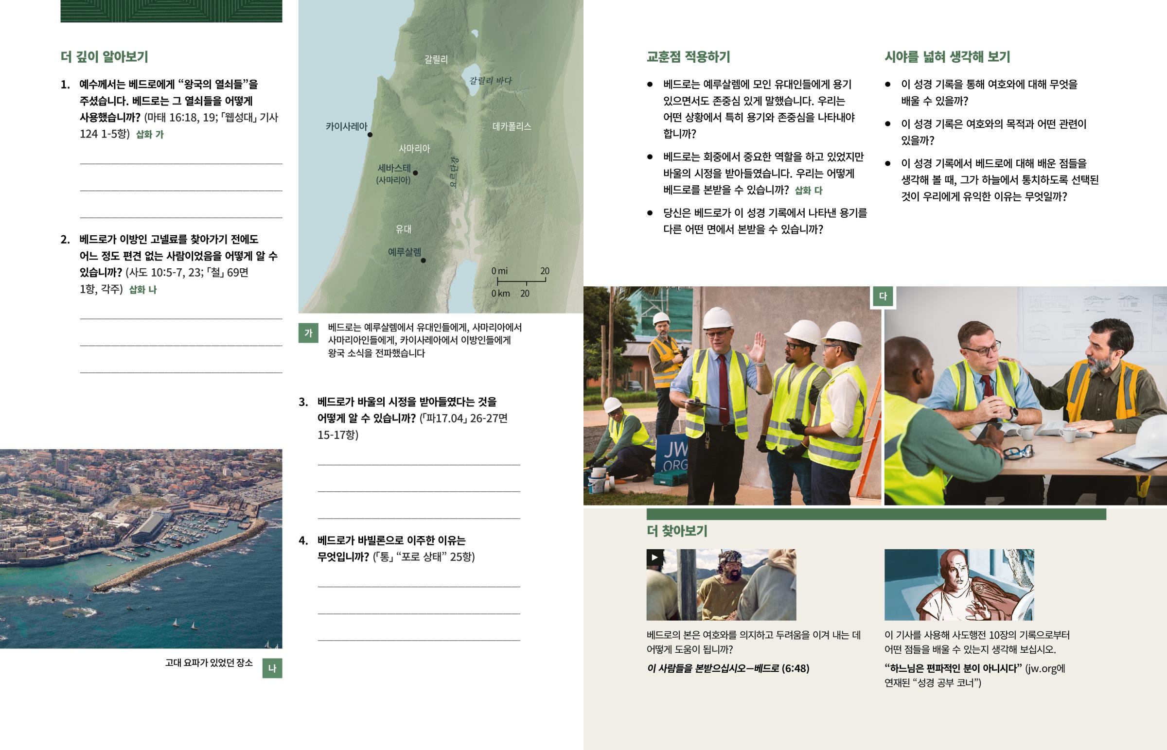 2. 베드로가 이방인 고넬료를 찾아가기 전에도 어느 정도 편견 없는 사람이었음을 어떻게 알 수 있습니까? (사도 10:5-7, 23; 「철」 69면 1항, 각주) 삽화 나