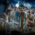 자정이 한참 지났습니다. 제사장들은 유다가 예수를 배반하여 넘기는 대가로 그에게 은 30닢을 주기로 합의했습니다. 그래서 유다는 수제사장들과 바리새인들로 이루어진 많은 무리를 이끌고 예수를 찾아 나섭니다. 무장한 로마 군인들과 군대 대장도 그들과 함께합니다.