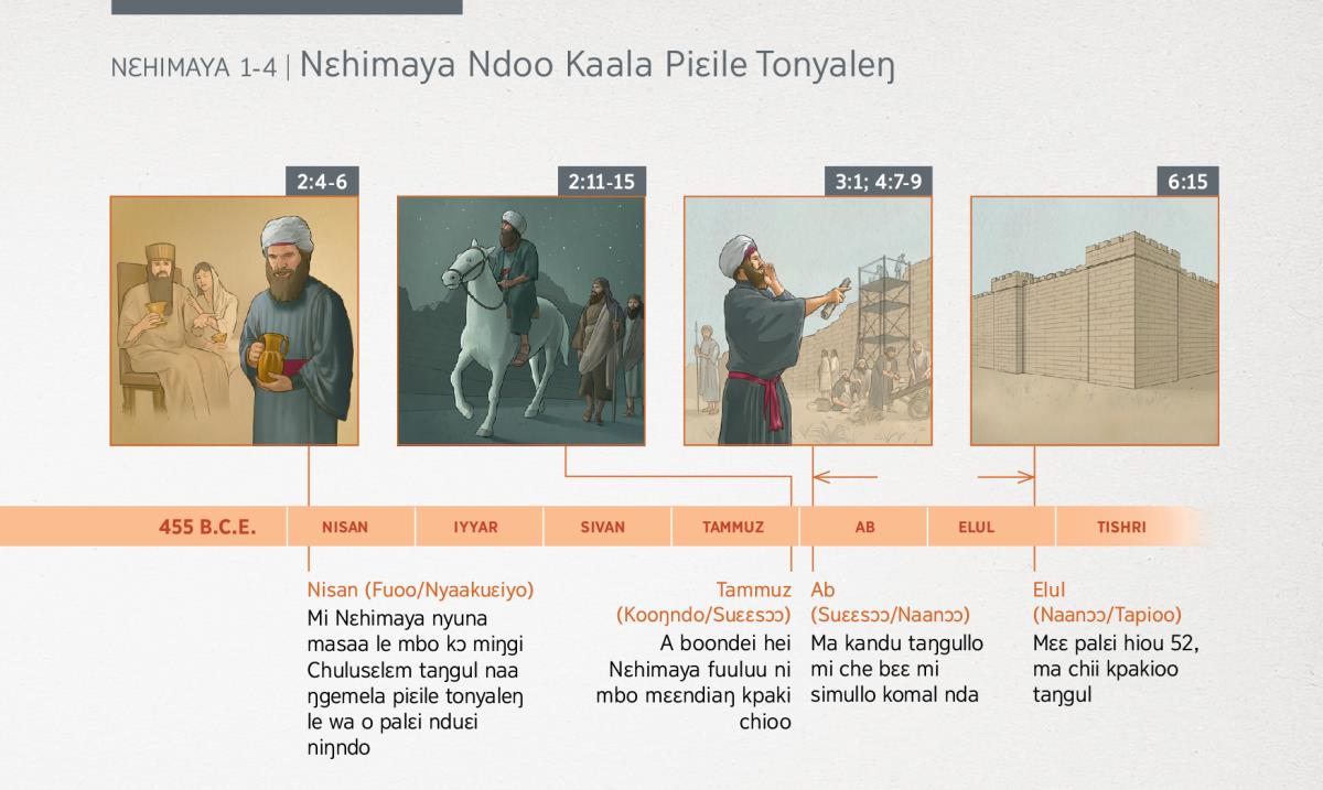 - Nisan (Fuoo/Nyaakuɛiyo) - 2:4-6 Mi Nɛhimaya nyuna masaa le mbo kɔ miŋgi Chulusɛlɛm taŋgul naa ŋgemela piɛile tonyaleŋ le wa o palɛi nduɛi niŋndo