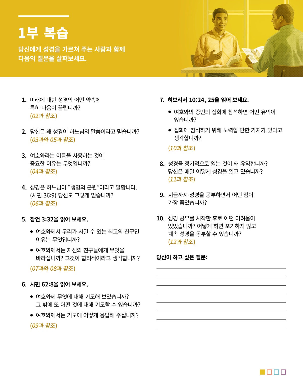 당신에게 성경을 가르쳐 주는 사람과 함께 다음의 질문을 살펴보세요.