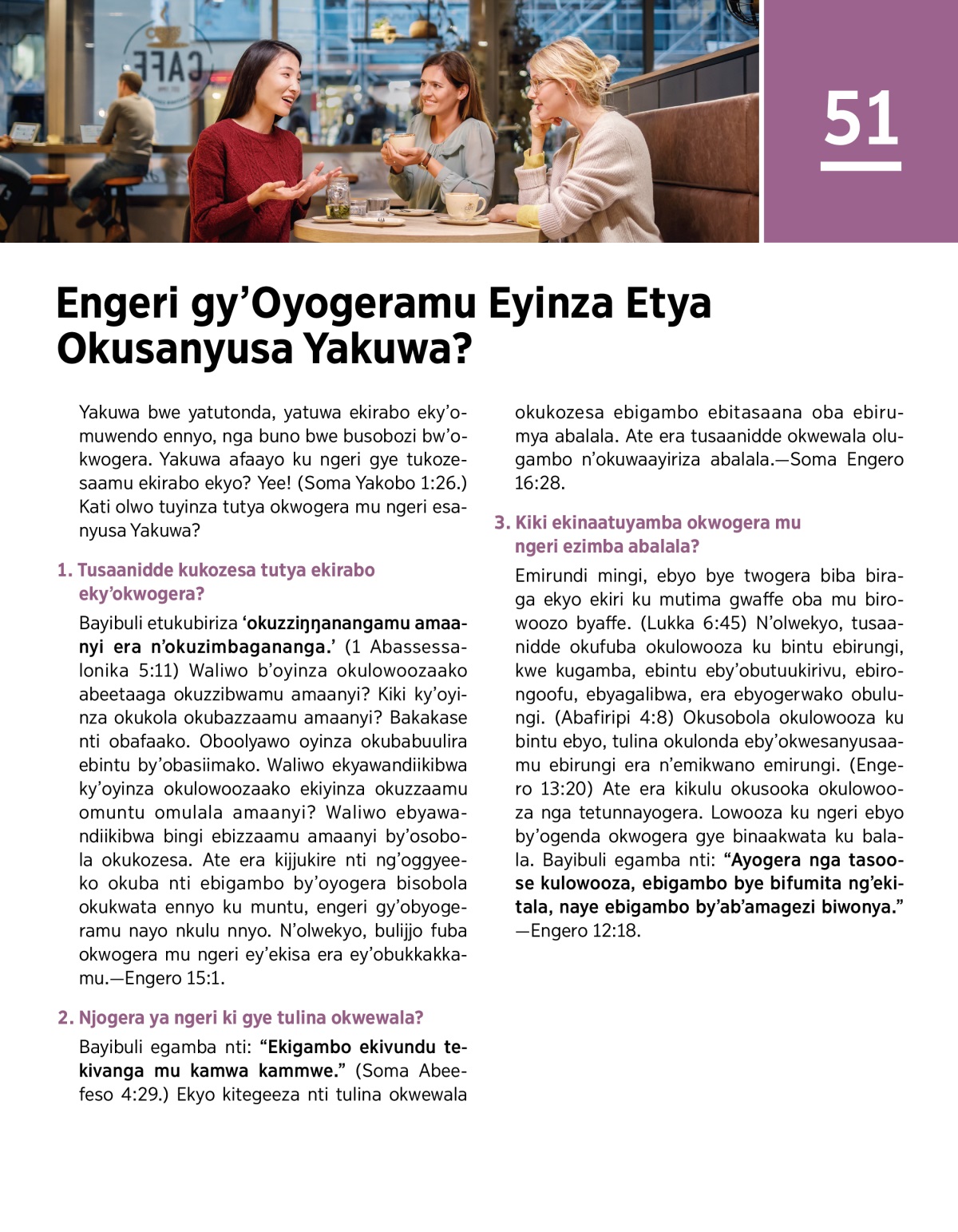 Manya engeri gy’oyinza okwogera mu ngeri esanyusa Yakuwa era ezzaamu abalala amaanyi.