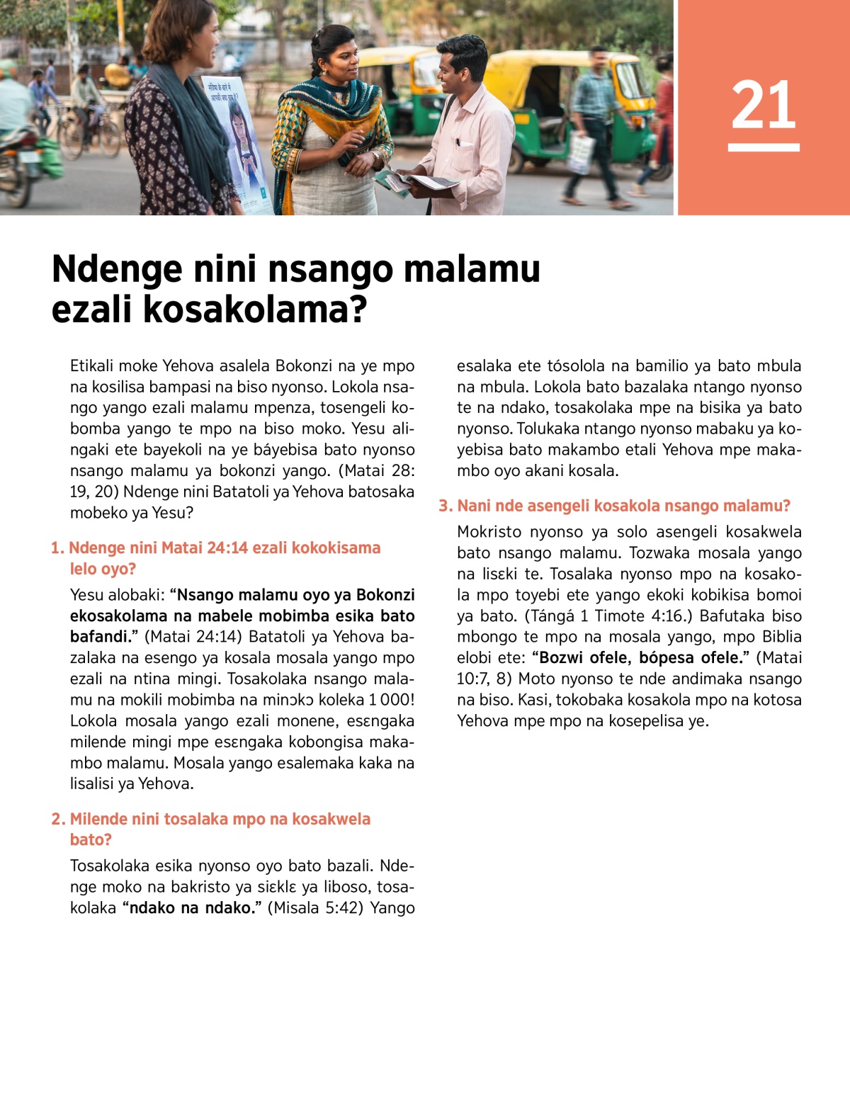• Mpo na nini tokotika kosakola te? ​—Talá vɛrsɛ 29, 38, mpe 39.
