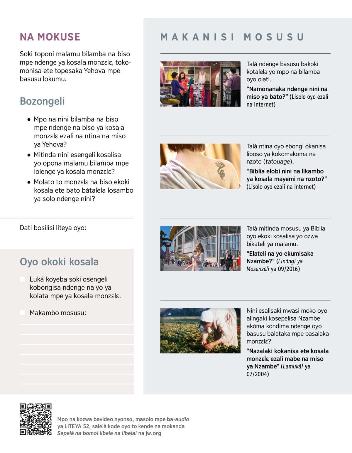 1. Mitinda nini ekoki kosalisa biso tólataka malamu mpe tósalaka monzɛlɛ malamu?