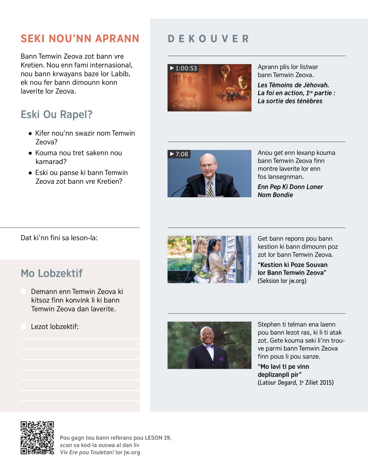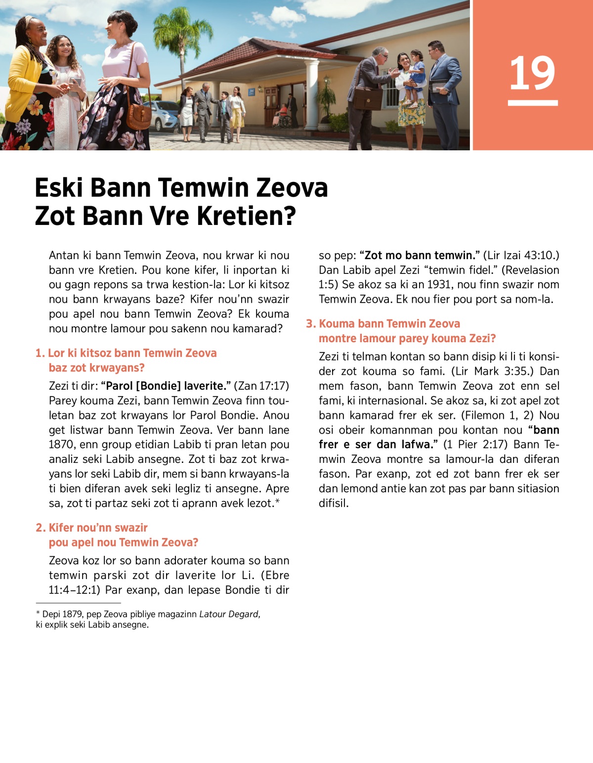1. Lor ki kitsoz bann Temwin Zeova baz zot krwayans?