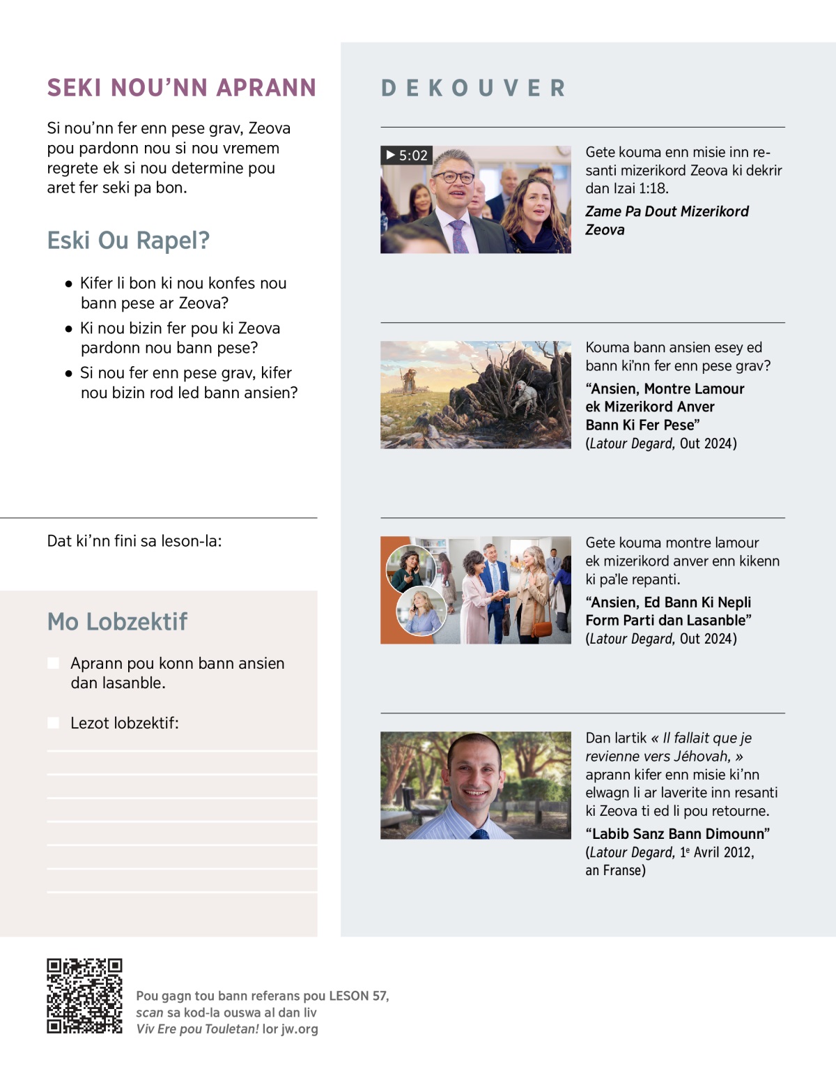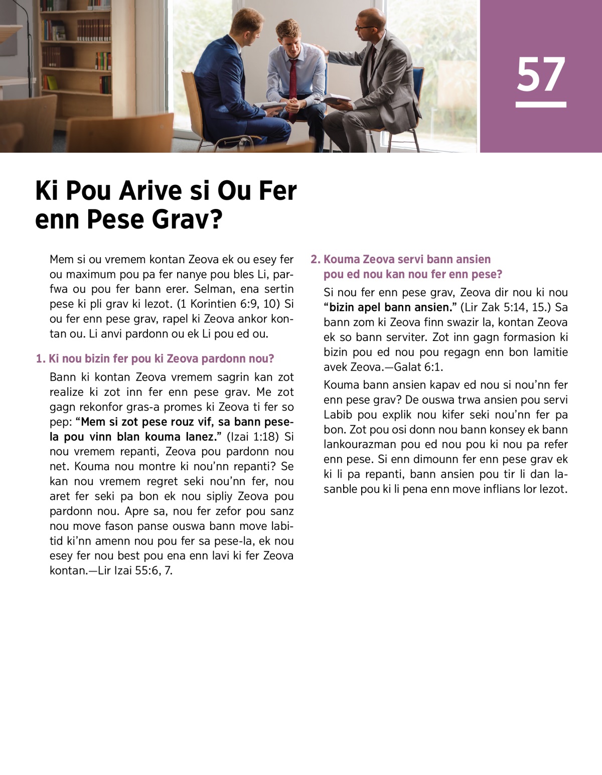 Anou gete kouma ou kapav konpran ek apresie pli bien fason ki Zeova ed nou kan nou fer enn pese grav.