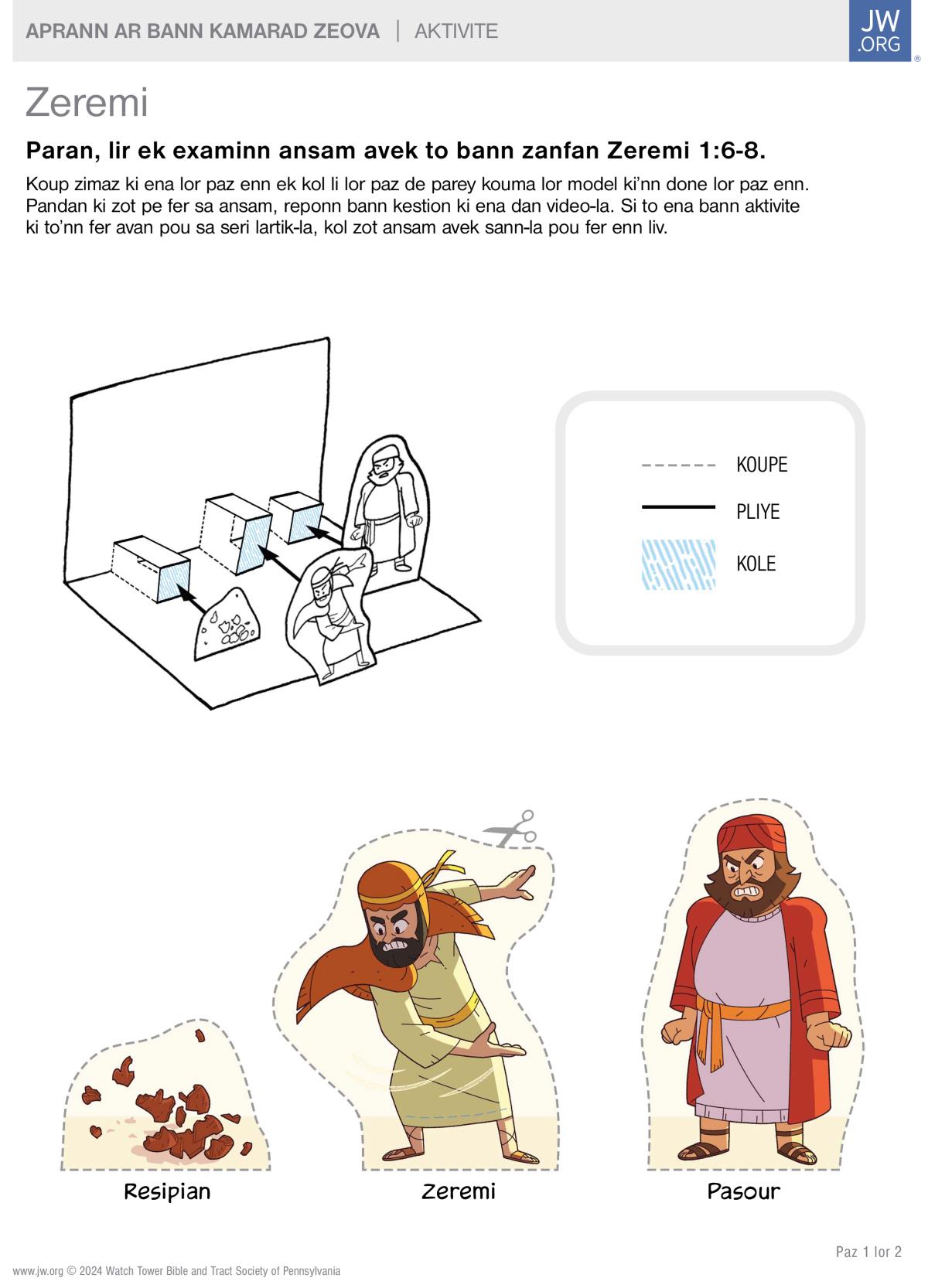 Servi sa aktivite ki bizin inprime la pou aprann ar kamarad Zeova, Zeremi.