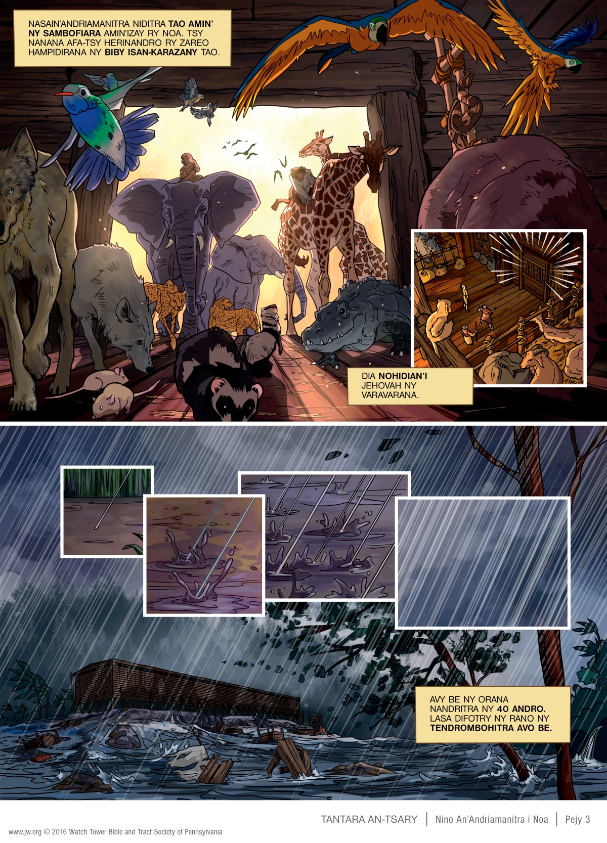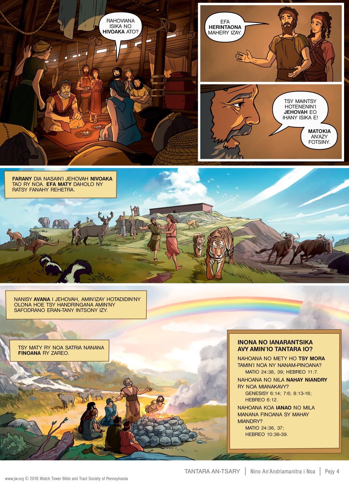 Jereo ato ny tantaran’i Noa. Nanao sambofiara ngezabe izy, amin’izay tsy ho faty izy mianakavy sy ireo biby.