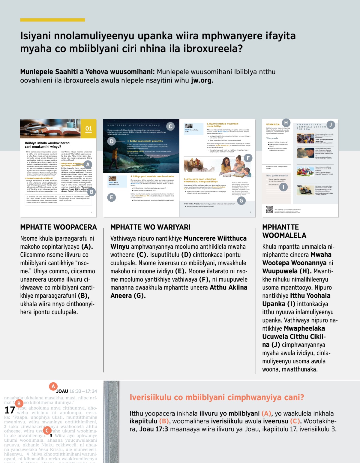 Munlepele Saahiti a Yehova wuusomihani: Munlepele wuusomihani Ibiiblya ntthu oovahileni ila ibroxureela awula nlepele nsayitini wihu jw.org.