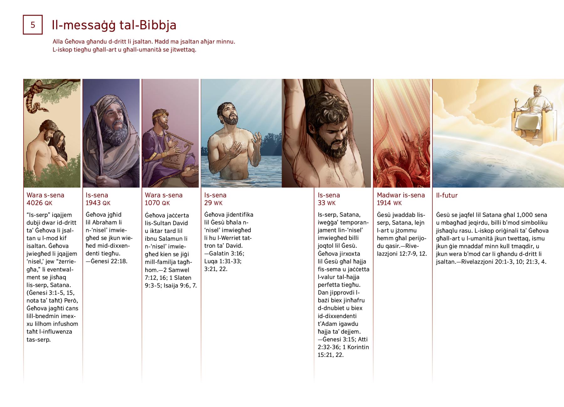 Is-sena 33 WK Is-serp, Satana, iweġġaʼ temporanjament lin-‘nisel’ imwiegħed billi joqtol lil Ġesù. Ġeħova jirxoxta lil Ġesù għal ħajja fis-sema u jaċċetta l-valur tal-ħajja perfetta tiegħu. Dan jipprovdi l-bażi biex jinħafru d-dnubiet u biex id-dixxendenti t’Adam igawdu ħajja taʼ dejjem.—Ġenesi 3:15; Atti 2:32-36; 1 Korintin 15:21, 22. |