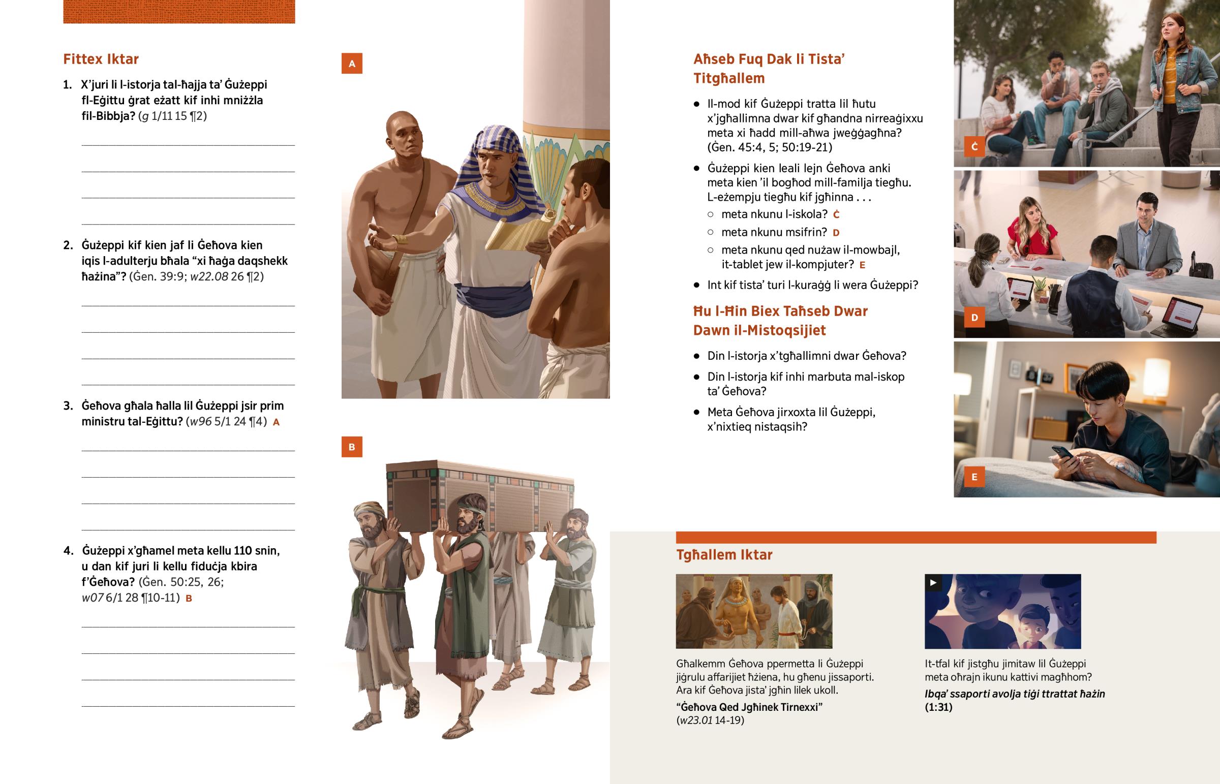 2. Ġużeppi kif kien jaf li Ġeħova kien iqis l-adulterju bħala “xi ħaġa daqshekk ħażina”? (Ġen. 39:9; w22.08 26 ¶2)