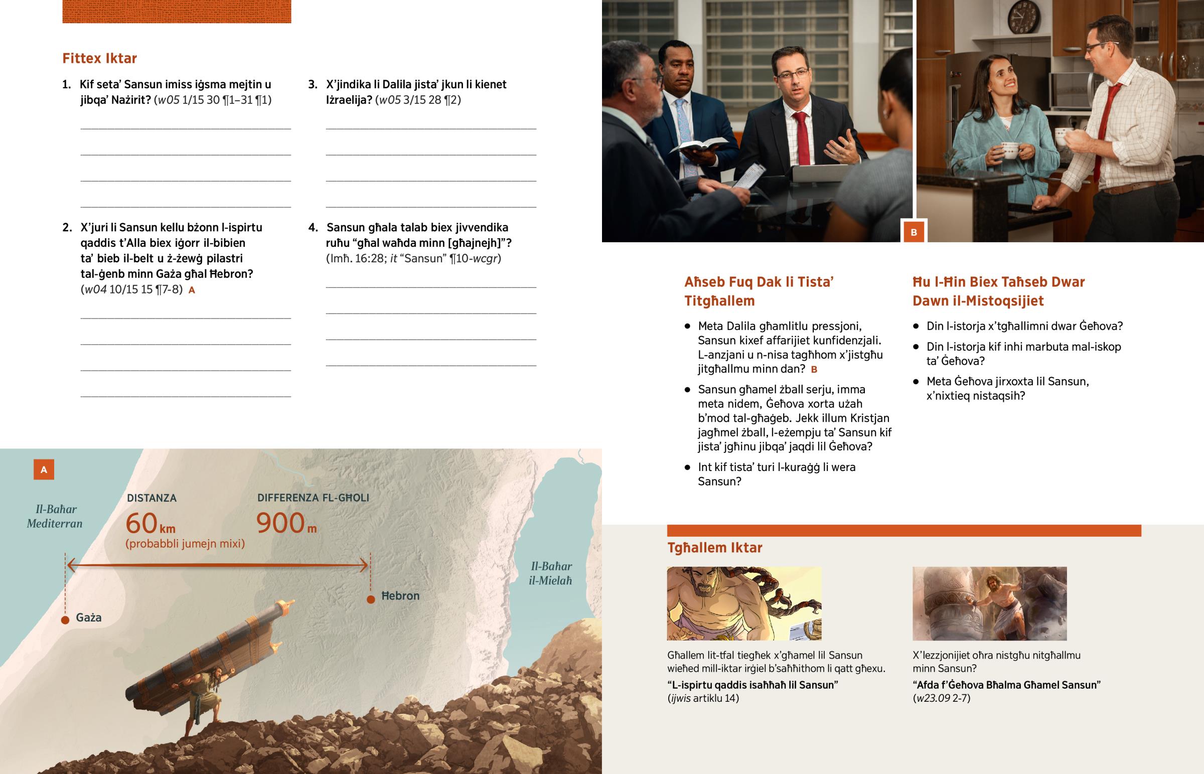 2. X’juri li Sansun kellu bżonn l-ispirtu qaddis t’Alla biex iġorr il-bibien taʼ bieb il-belt u ż-żewġ pilastri tal-ġenb minn Gaża għal Ħebron? (w04 10/15 15 ¶7-8) A