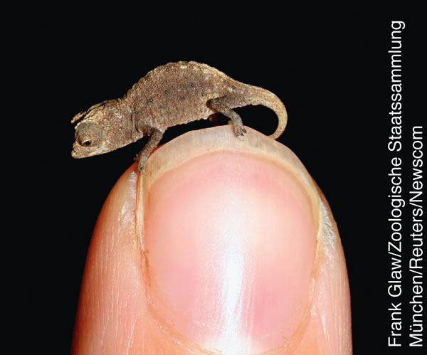 ကမ္ဘာ့အသေးဆုံးပုတ်သင်ညိုကို မကြာသေးခင်က မာဒါဂက်စကာမှာ တွေ့ ရှိခဲ့ကြတယ်။ အရှည်ဆုံး ၁.၁ လက်မပဲရှိပြီး တချို့အကောင်တွေဆိုရင် လက်သည်းထိပ်ပေါ်မှာ နေနိုင်လောက်အောင် သေးတယ်။ သူတို့နေထိုင်တဲ့နေရာက ထိခိုက်ပျက်စီးလာတဲ့အတွက် ဒီအကောင်လေးတွေဟာ မျိုးသုဉ်းမယ့်အန္တရာယ် ကျရောက်နေတယ်။