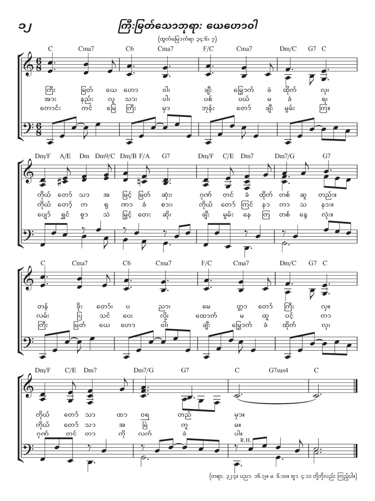 ၁။ ကြီးမြတ် ယေဟောဝါ၊ ချီးမြှောက်ခံထိုက်လှ၊