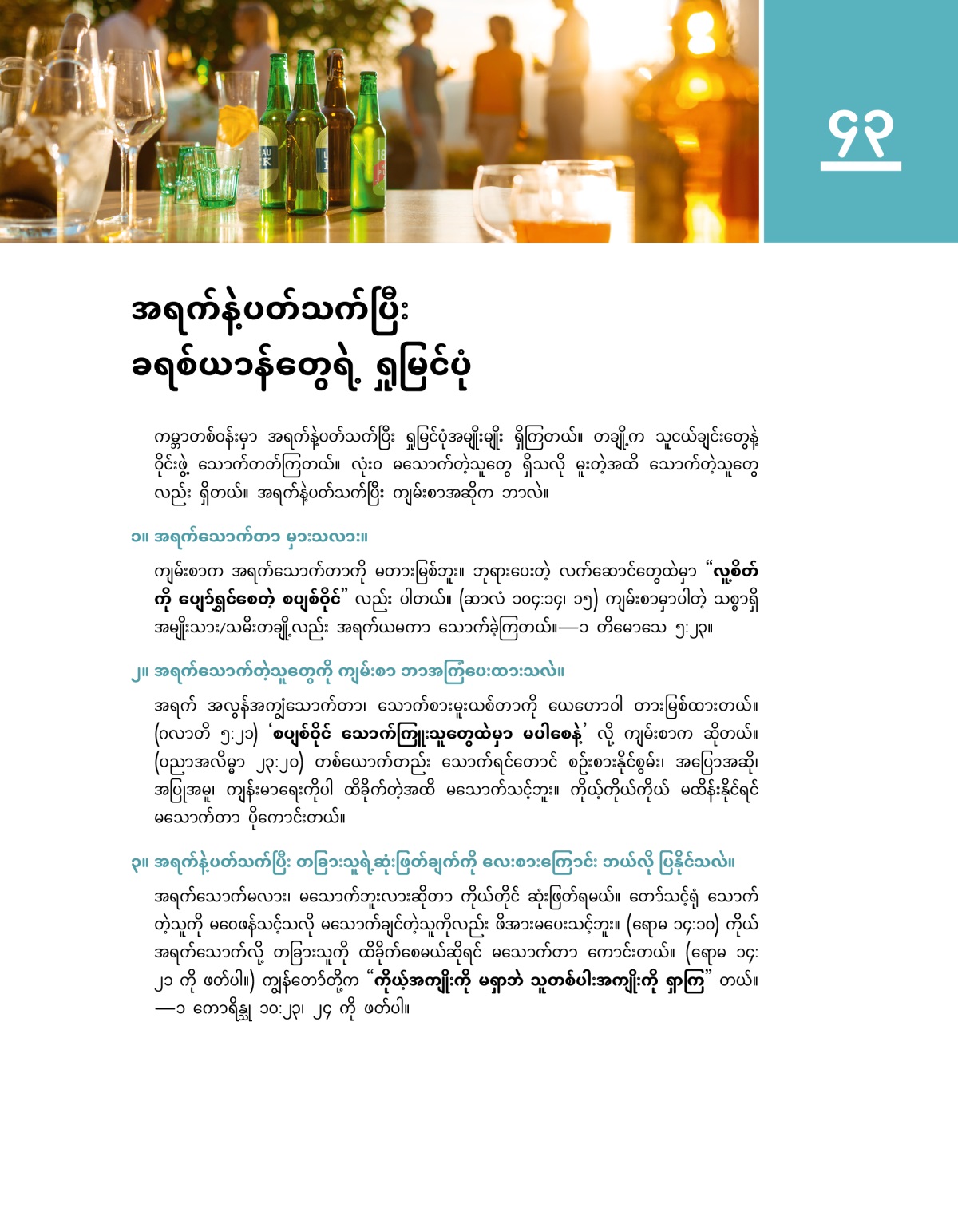 ၂။ အရက်သောက်တဲ့သူတွေကို ကျမ်းစာ ဘာအကြံပေးထားသလဲ။