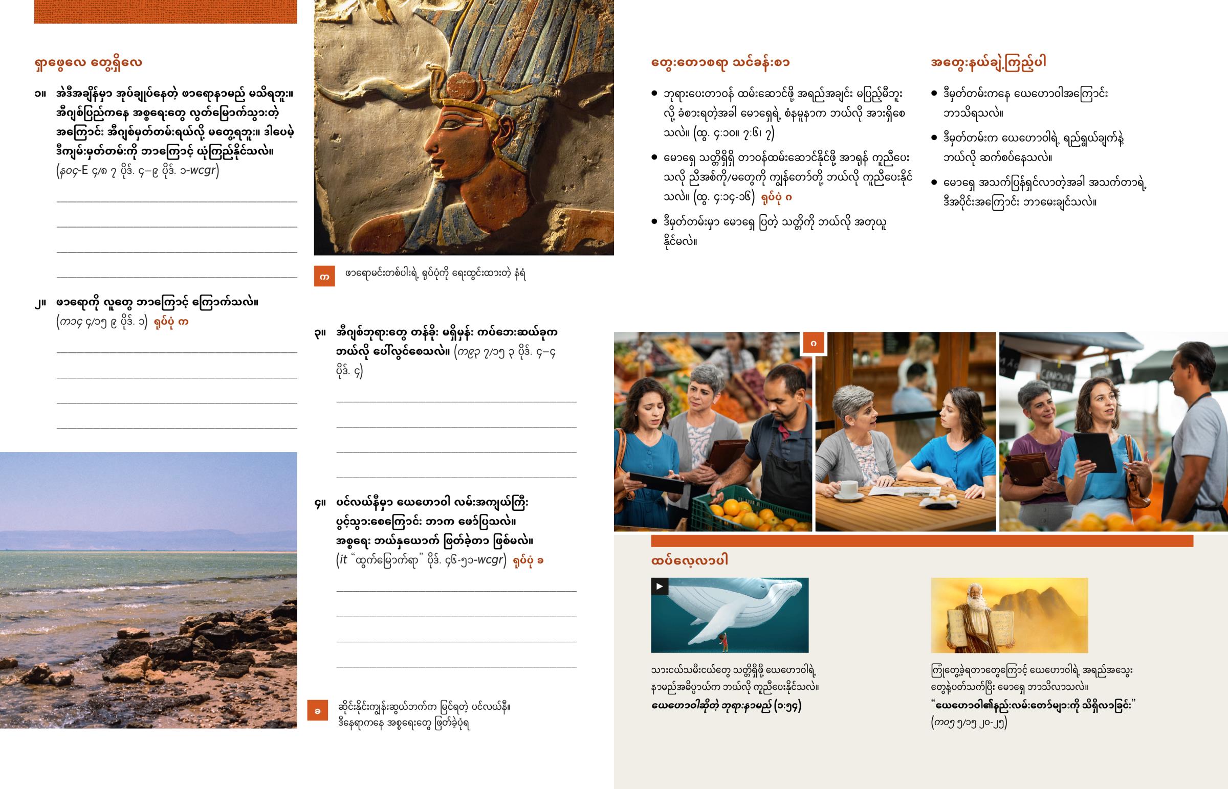 ၄။ ပင်လယ်နီမှာ ယေဟောဝါ လမ်းအကျယ်ကြီး ပွင့်သွားစေကြောင်း ဘာက ဖော်ပြသလဲ။ အစ္စရေး ဘယ်နှယောက် ဖြတ်ခဲ့တာ ဖြစ်မလဲ။ (it “ထွက်မြောက်ရာ” ပိုဒ်. ၄၆-၅၁-wcgr) ရုပ်ပုံ ခ