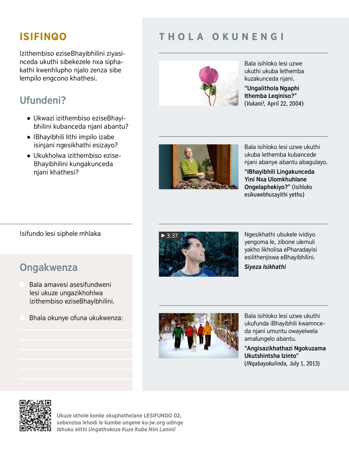 Engxenyeni le uzafunda ngezinye izithembiso eziseBhayibhilini ezisitshengisa lokho okuzakwenzakala ngesikhathi esizayo. Uzabona lokuthi ukwazi izithembiso lezi kubancede njani abanye.
