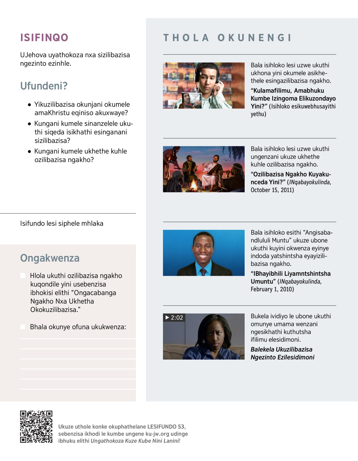 “Ozilibazisa Ngakho Kuyakunceda Yini?” (INqabayokulinda, October 15, 2011)