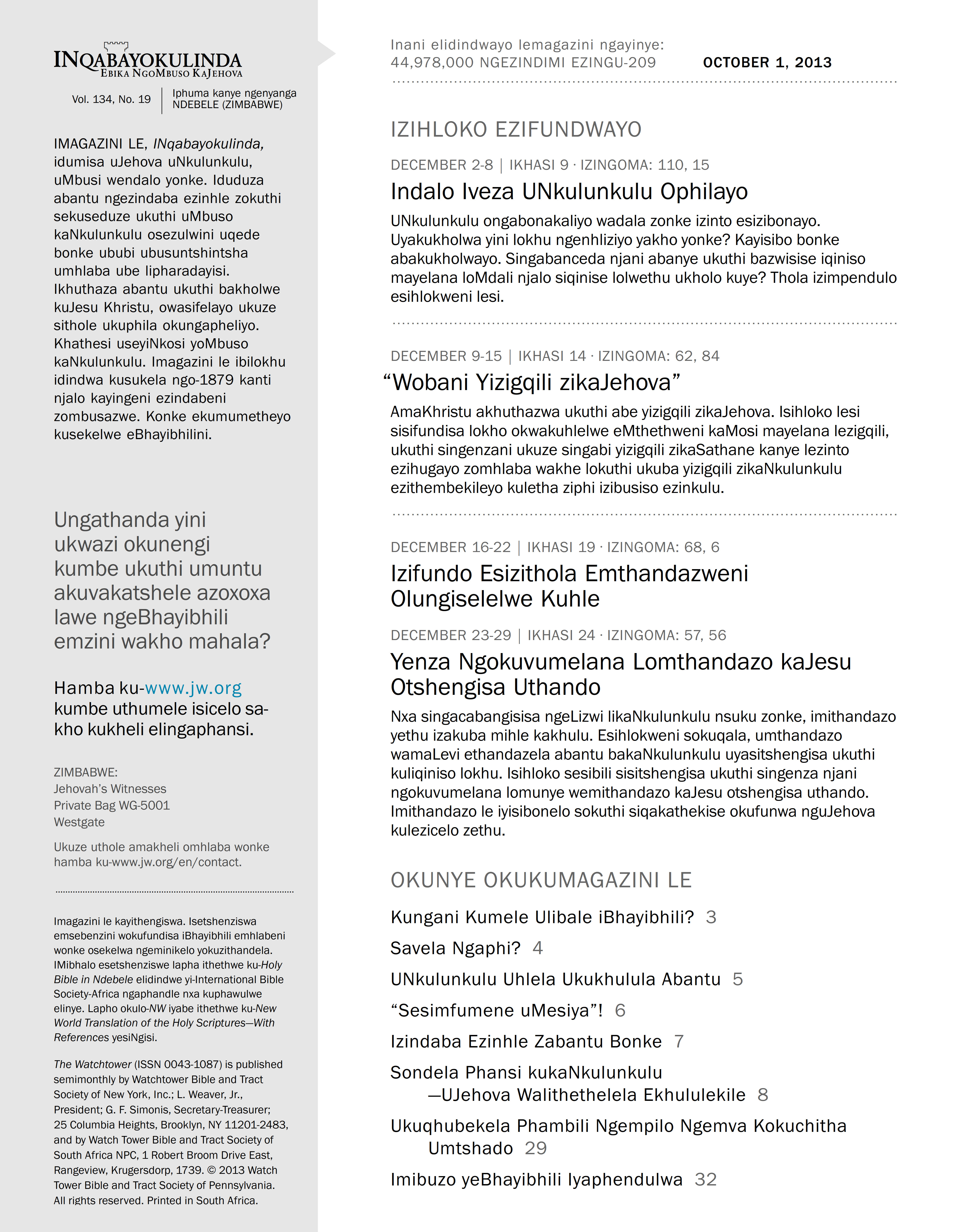 INqabayokulinda Ebika ngoMbuso kaJehova—2013