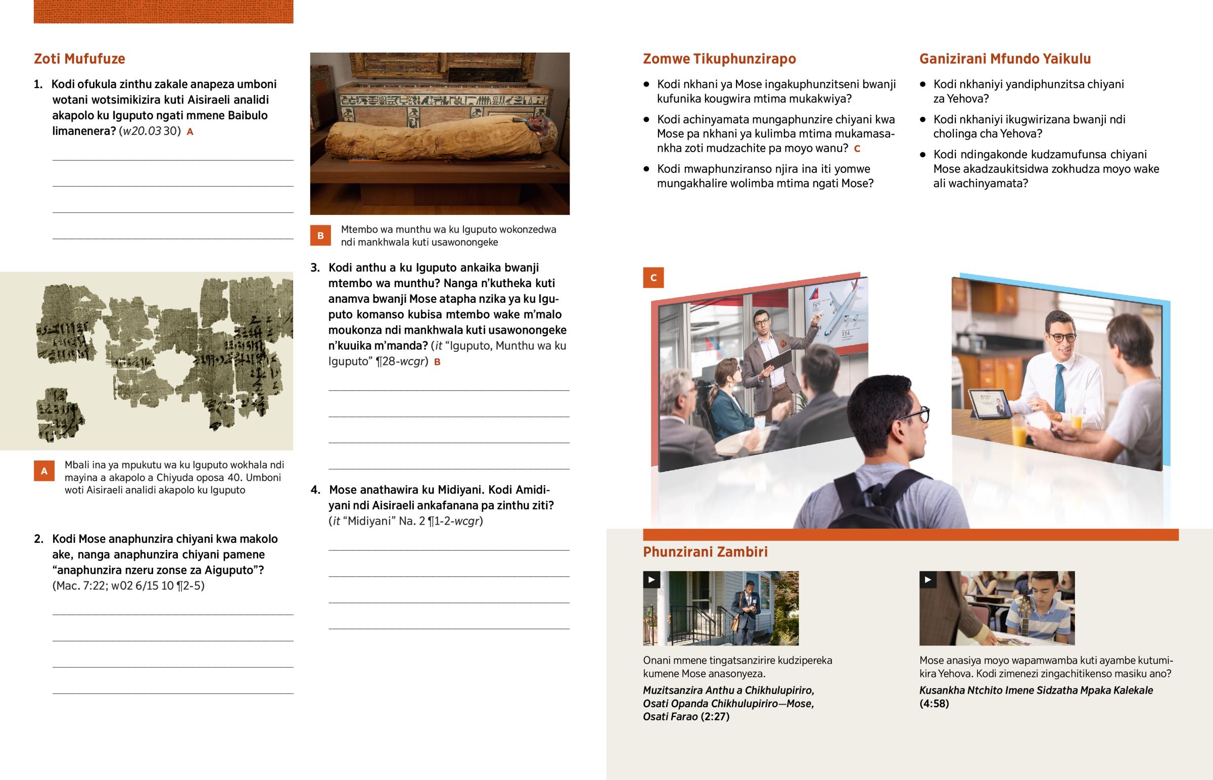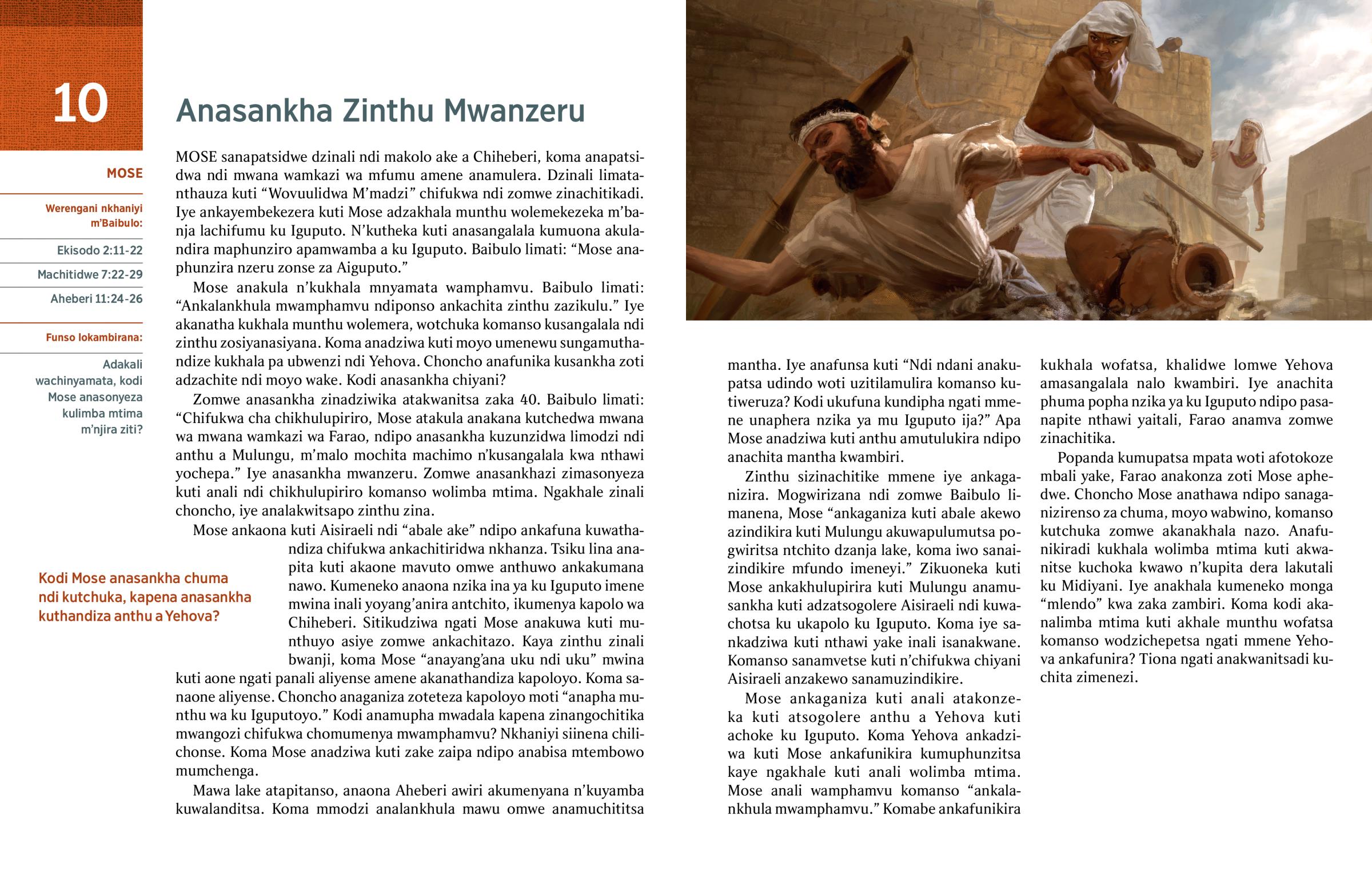 2. 2. Kodi Mose anaphunzira chiyani kwa makolo ake, nanga anaphunzira chiyani pamene “anaphunzira nzeru zonse za Aiguputo”? (Mac. 7:22; w02 6/15 10 ¶2-5)