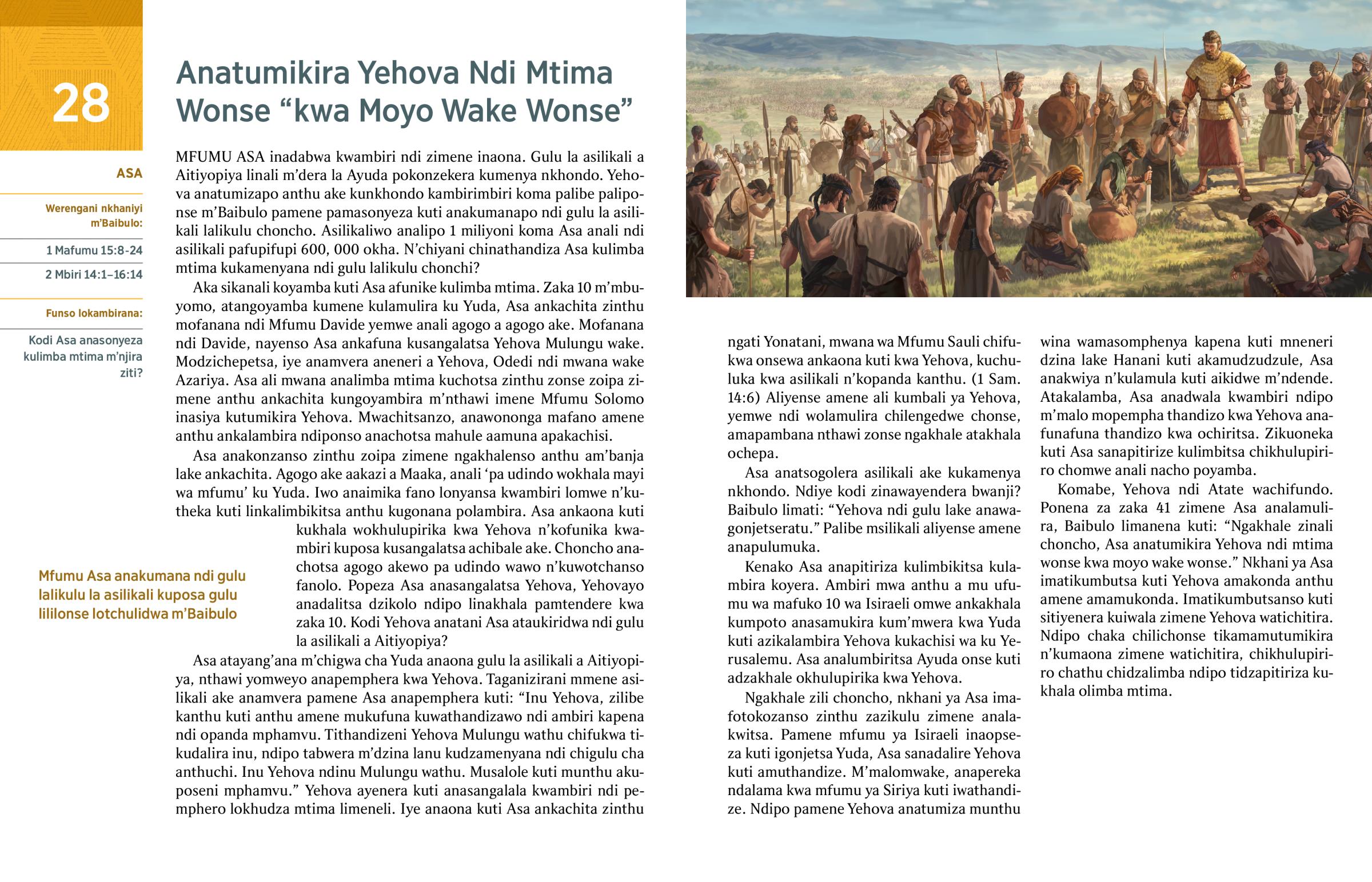 Poyamba Asa anadalira Yehova pogonjetsa gulu lalikulu la asilikali koma pambuyo pake anadalira anthu kugonjetsa kagulu kochepa ka asilikali. Kodi zimenezi zikutiphunzitsa chiyani pa nkhani yodalira Yehova m’zochita zathu zonse? (Miy. 3:5, 6)