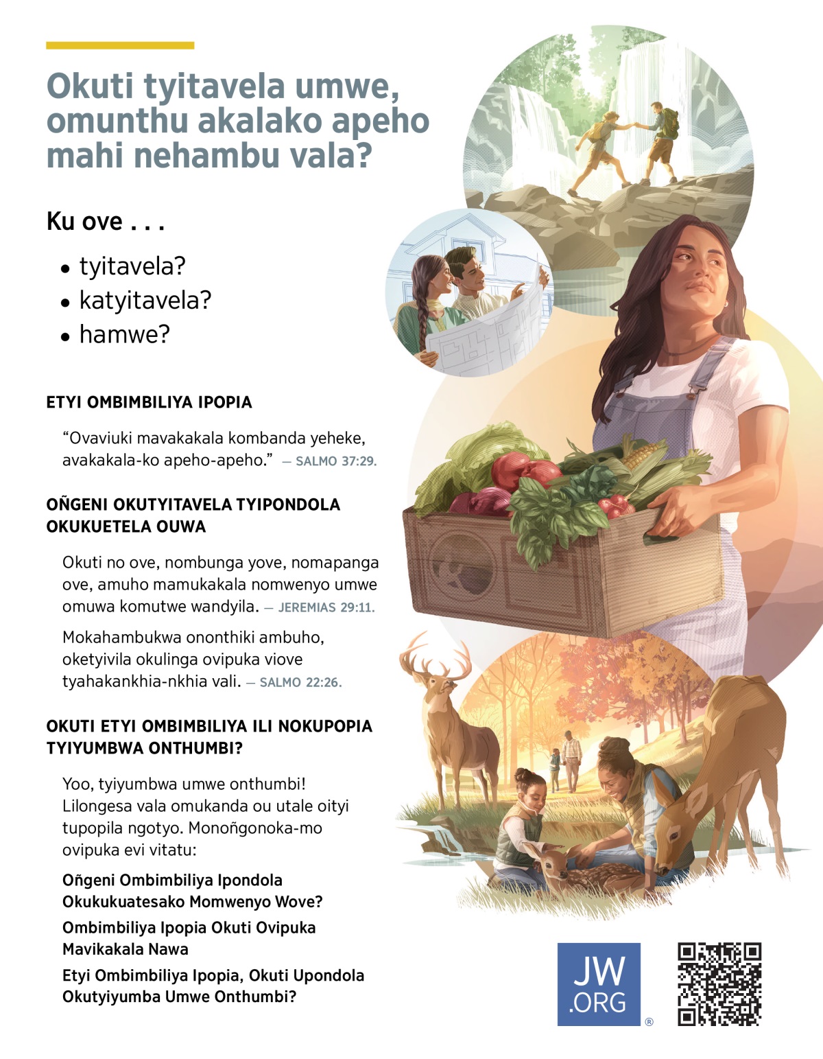 Okuti no ove, nombunga yove, nomapanga ove, amuho mamukakala nomwenyo umwe omuwa komutwe wandyila. — JEREMIAS 29:11.