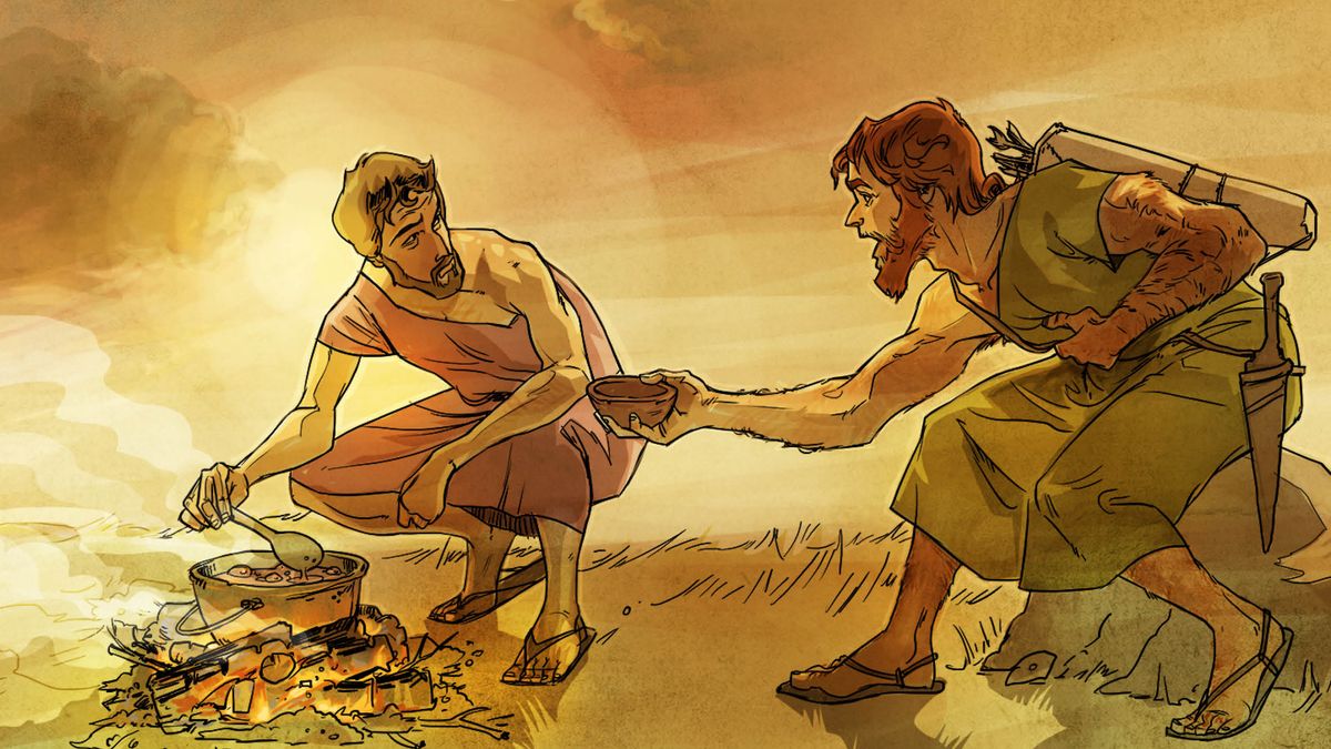 Jakó sta na mankusa nkuantu i na pertusi di Esaú ku si omis.