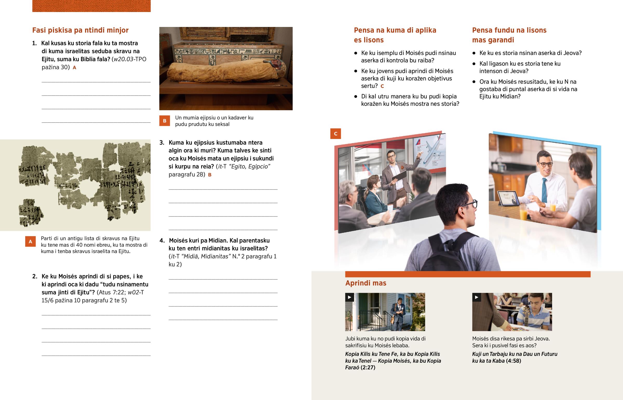 2. 2. Ke ku Moisés aprindi di si papes, i ke ki aprindi oca ki dadu “tudu nsinamentu suma jinti di Ejitu”? (Atus 7:22; w02-T 15/6 paẑina 10 paragrafu 2 te 5)