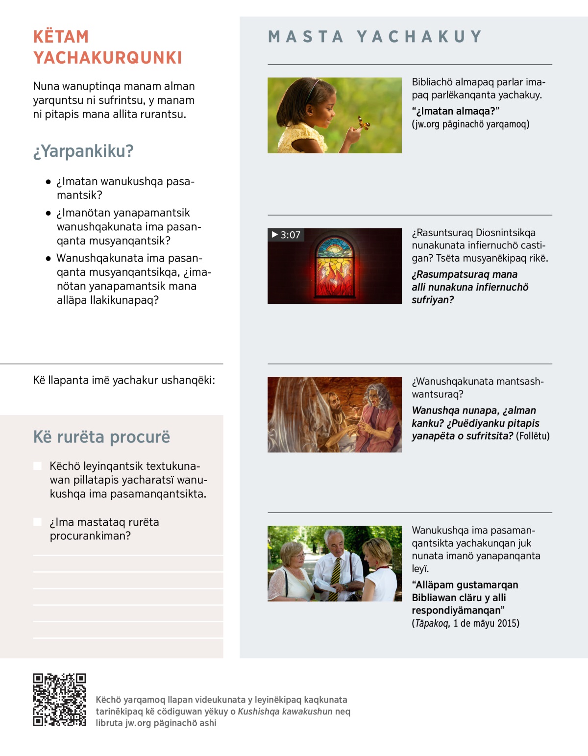 Wanukushqa ima pasamanqantsikta yachakunqan juk nunata imanö yanapanqanta leyï.