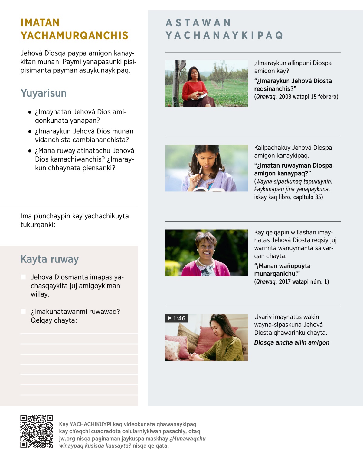 Kunanqa astawan yachasunchis imakunatas ruwananchis Diospa amigon kananchispaq chayta, imaraykus Jehová Dios aswan allin amigonchis kanman chaytapas.