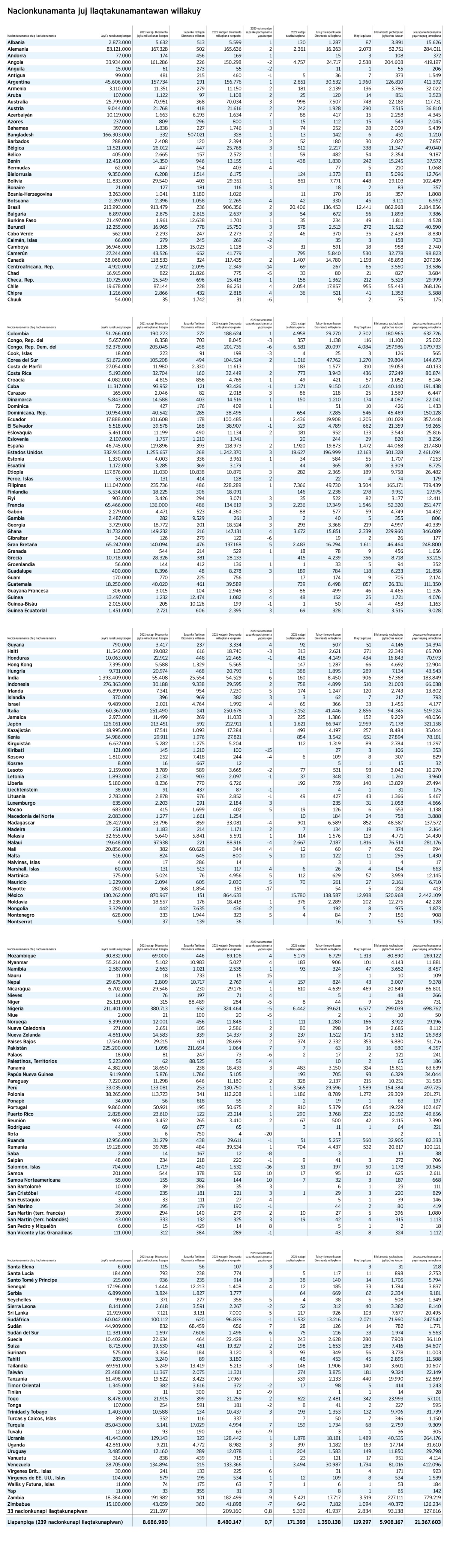 Llapanpiqa (239 nacionkunapi llaqtakunapiwan)  |