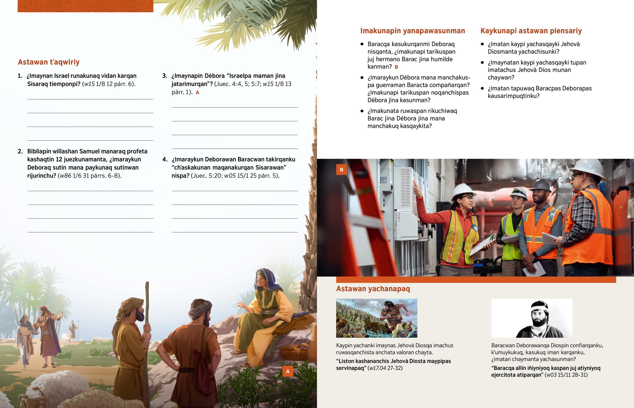 4. ¿Imaraykun Deborawan Baracwan takirqanku “ch’askakunan maqanakurqan Sisarawan” nispa? (Juec. 5:20; w05 15/1 25 párr. 5).