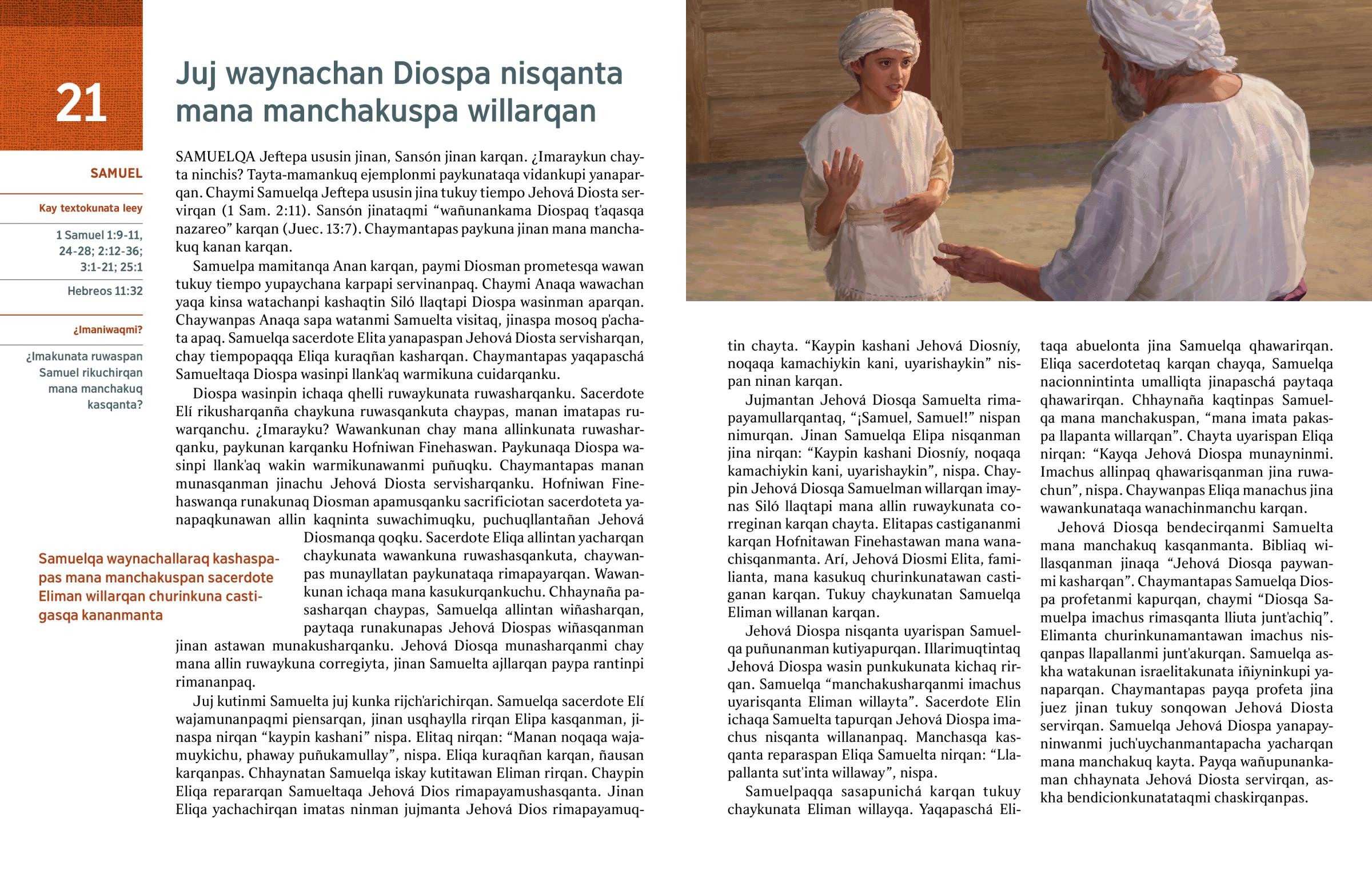 3. ¿Imaraykun Bibliapi nin “Samuelqa [wawallaraq kashaspaqa] manaraqmi Jehová Diosta allintaraqchu reqsirqan” nispa? (1 Sam. 3:7; w02 15/12 8 párrs. 5, 6).