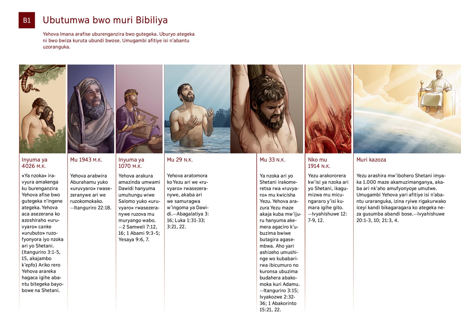 Inyuma ya 4026 M.K. «Ya nzoka» iravyura amakenga ku burenganzira Yehova afise bwo gutegeka n’ingene ategeka. Yehova aca asezerana ko azoshiraho «uruvyaro» canke «urubuto» ruzofyonyora iyo nzoka ari yo Shetani. (Itanguriro 3:1-5, 15, akajambo k’epfo) Ariko rero Yehova arareka hagaca igihe abantu bitegeka bayobowe na Shetani. |