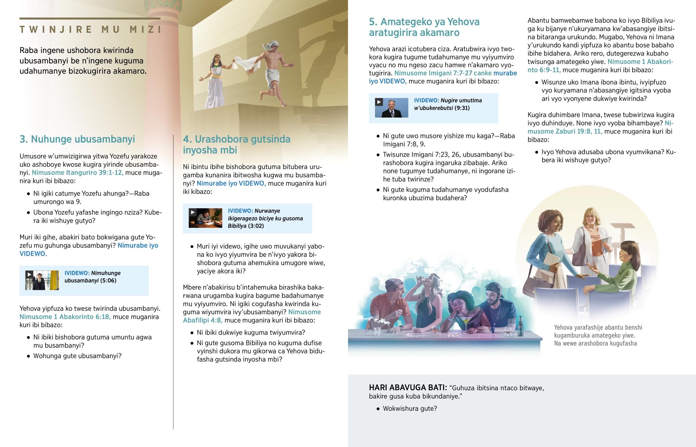 Umusore w’umwizigirwa yitwa Yozefu yarakoze uko ashoboye kwose kugira yirinde ubusambanyi. Nimusome Itanguriro 39:1-12, muce muganira kuri ibi bibazo: