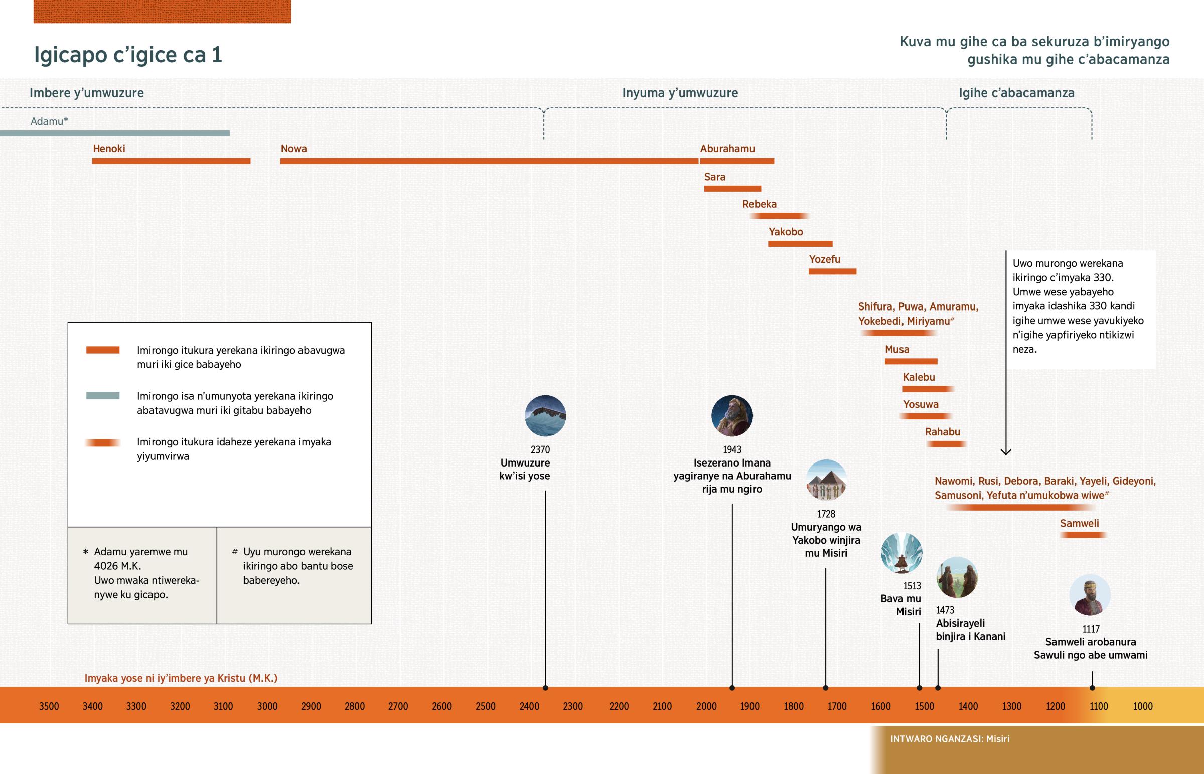 b Uwo murongo werekana ikiringo c’imyaka 330. Umwe wese yabayeho imyaka idashika 330 kandi igihe umwe wese yavukiyeko n’igihe yapfiriyeko ntikizwi neza.