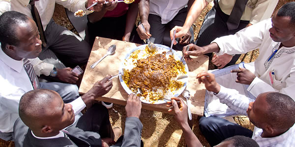 Ibifungurwa Imvugo ikunze gukoreshwa ni “Ntariye umuceri si mba ndiye!” Icitwa fufu, kino kikaba ari imyumbati batogotesha maze bakayihondahondera mu gicumbe, akenshi gikozwa inyama, ivyitwa okra be n’isosi ikarishe.