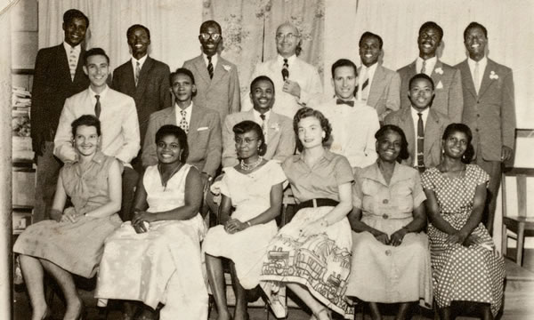 Ishure ry’ubusuku bw’Ubwami ryabereye muri Sierra Leone mu 1961. William Nushy (ku murongo w’inyuma, hagati), Charles Chappell (ku murongo wo hagati, uwa kabiri uvuye iburyo), na Reva Chappell (ku murongo w’imbere, uwa gatatu uvuye iburyo)