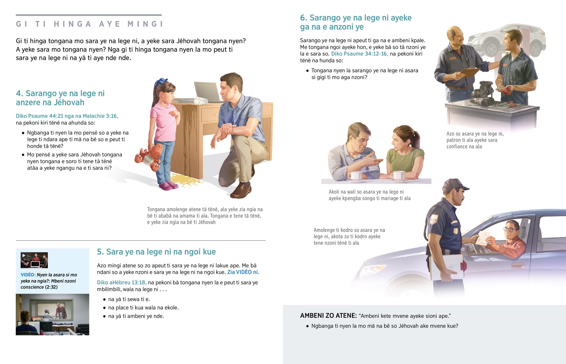 Gi ti hinga tongana mo sara ye na lege ni, a yeke sara Jéhovah tongana nyen? A yeke sara mo tongana nyen? Nga gi ti hinga tongana nyen la mo peut ti sara ye na lege ni na yâ ti aye nde nde.