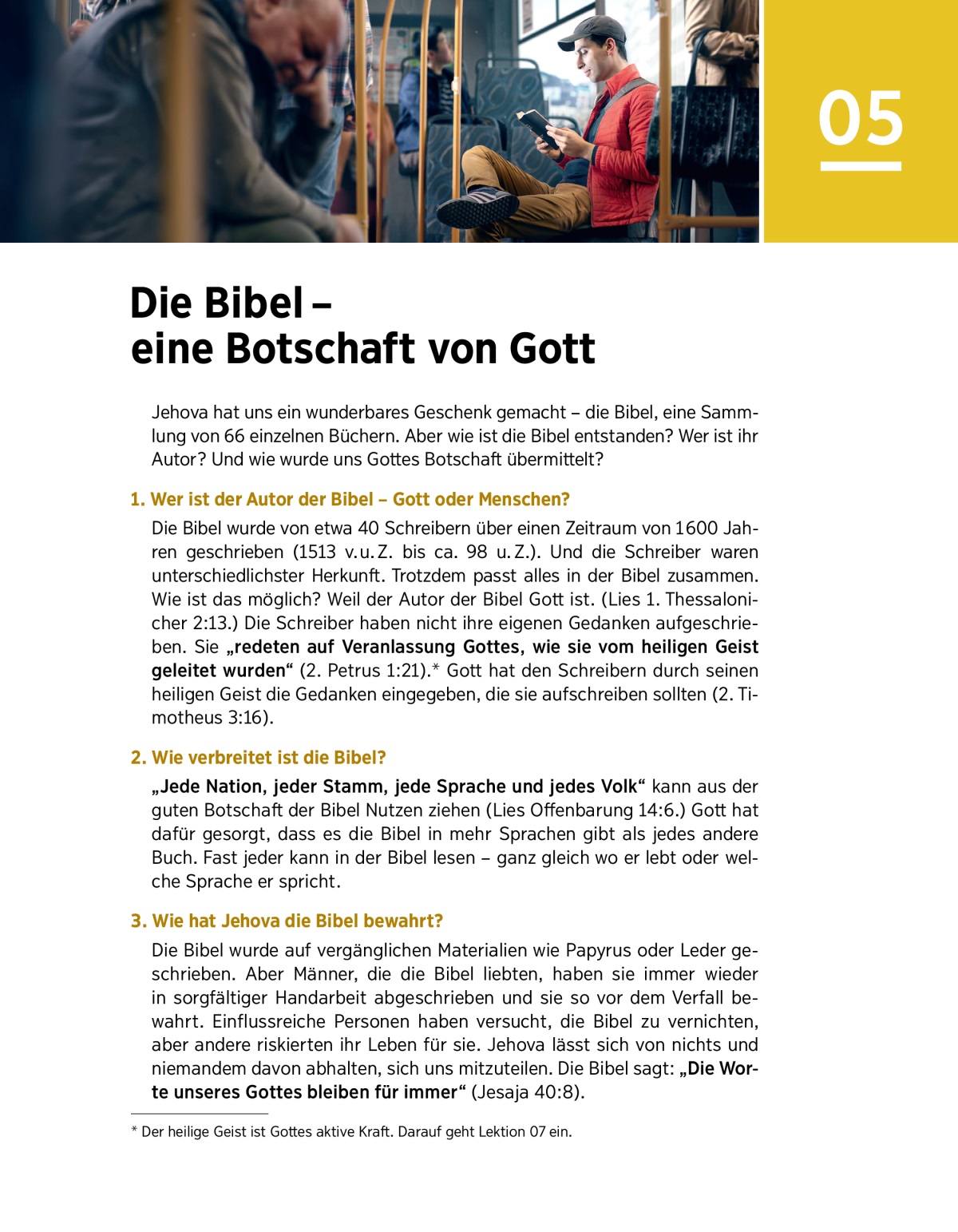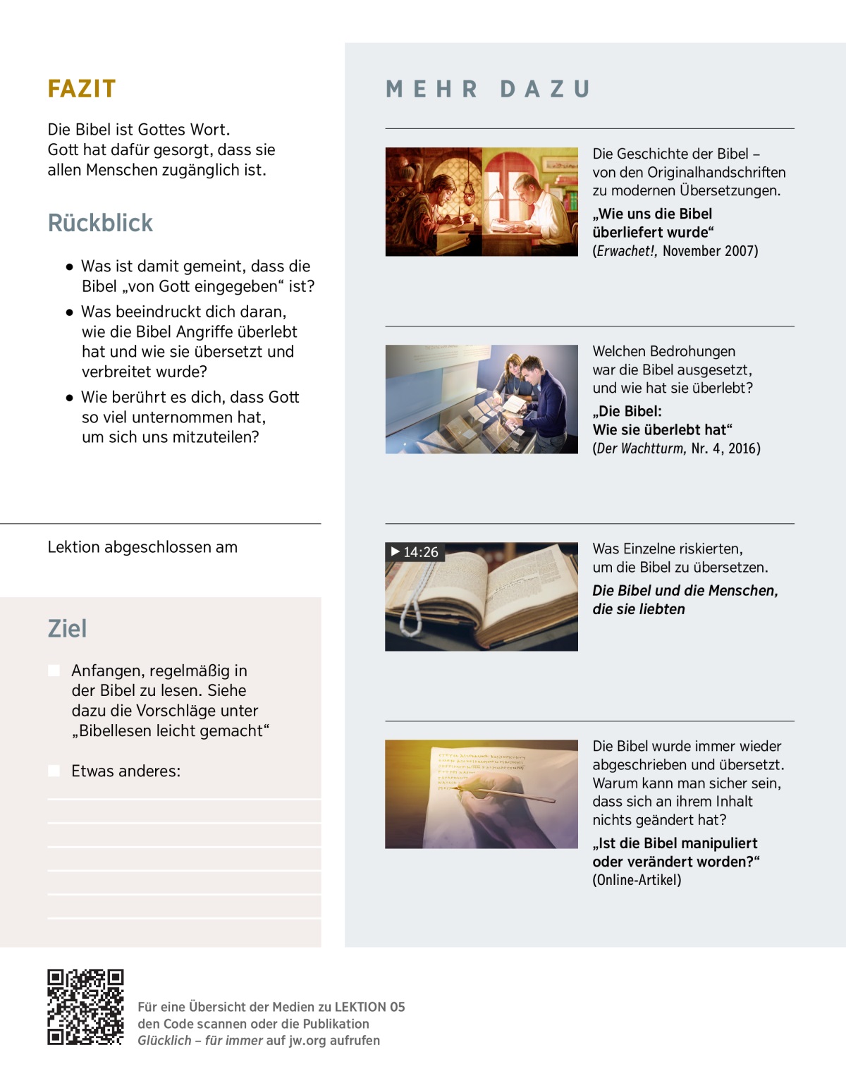 Dazu das VIDEO. Dann 2. Timotheus 3:16 lesen und die Fragen besprechen.
