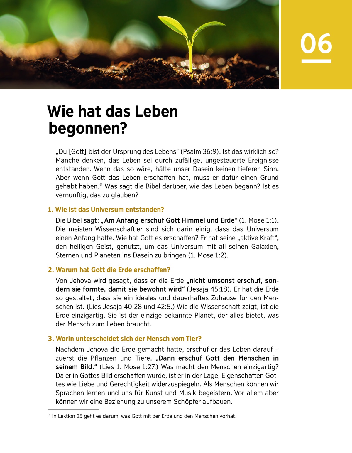 a In Lektion 25 geht es darum, was Gott mit der Erde und den Menschen vorhat.